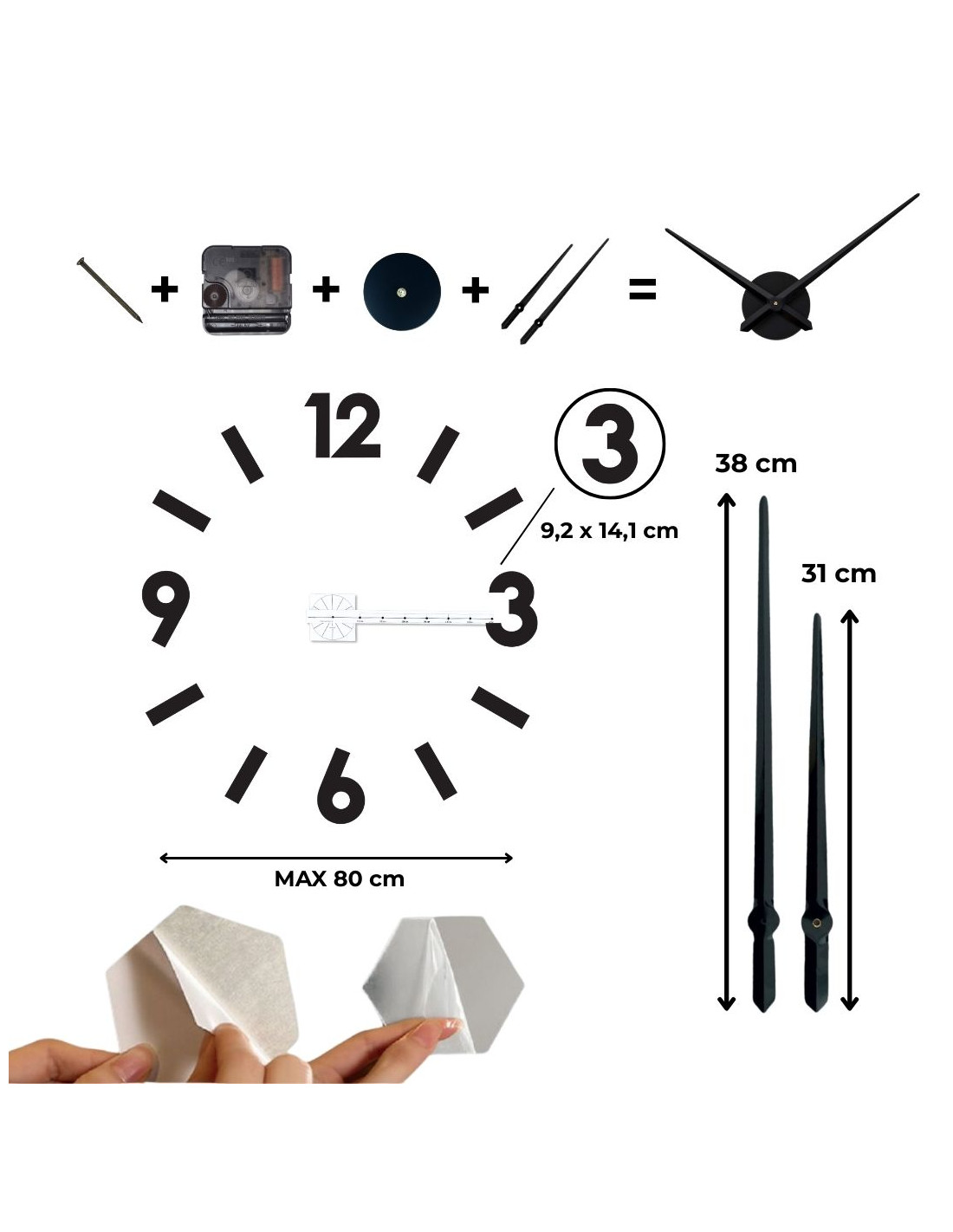 - Číslice ciferníka majú samolepiacu vrstvu, takže inštalácia je rýchla a bez vŕtania.