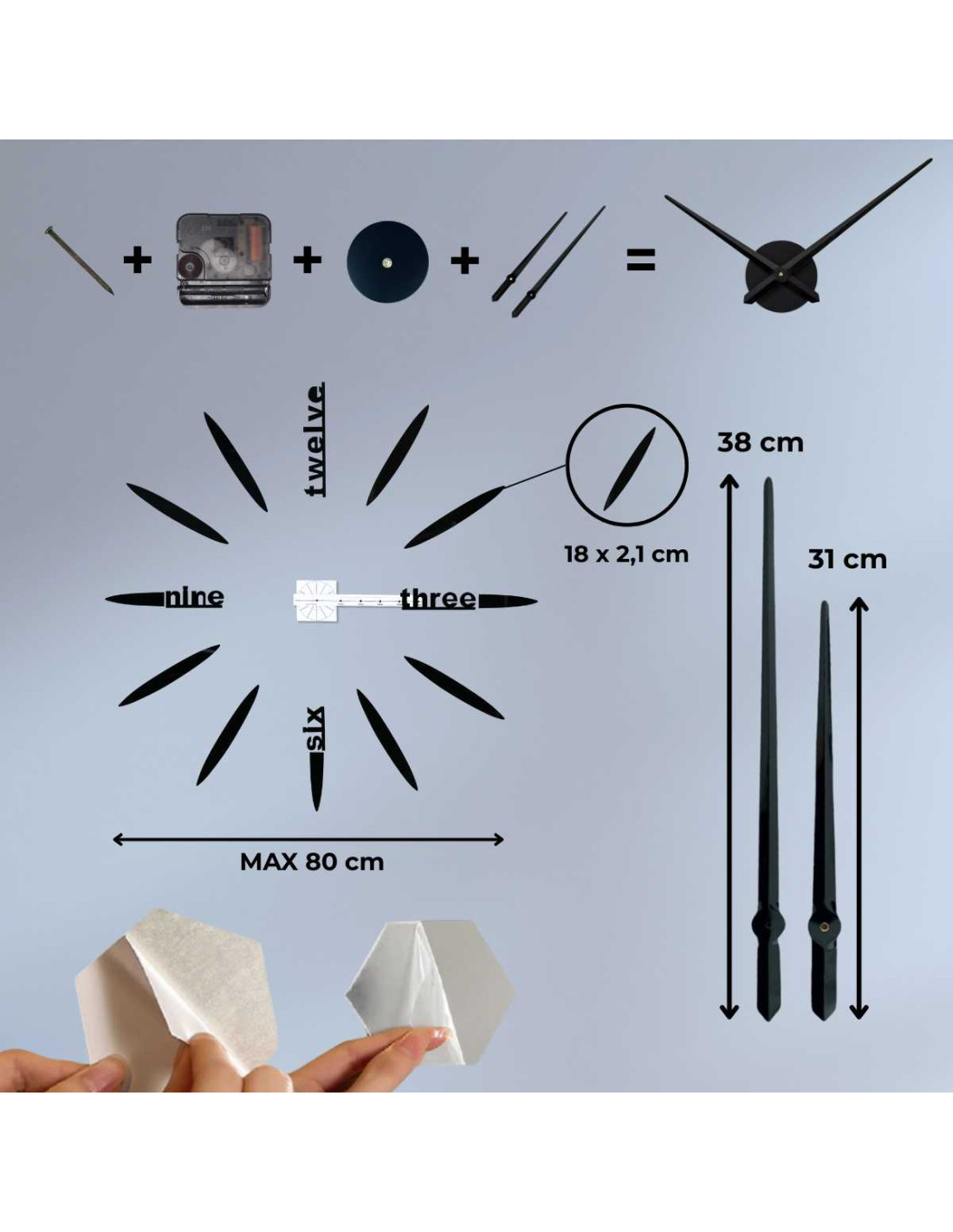 Tieto moderné hodiny kombinujú elegantný minimalistický dizajn, strojček s tichým a plynulým chodom a jednoduchú montáž bez vŕtania.