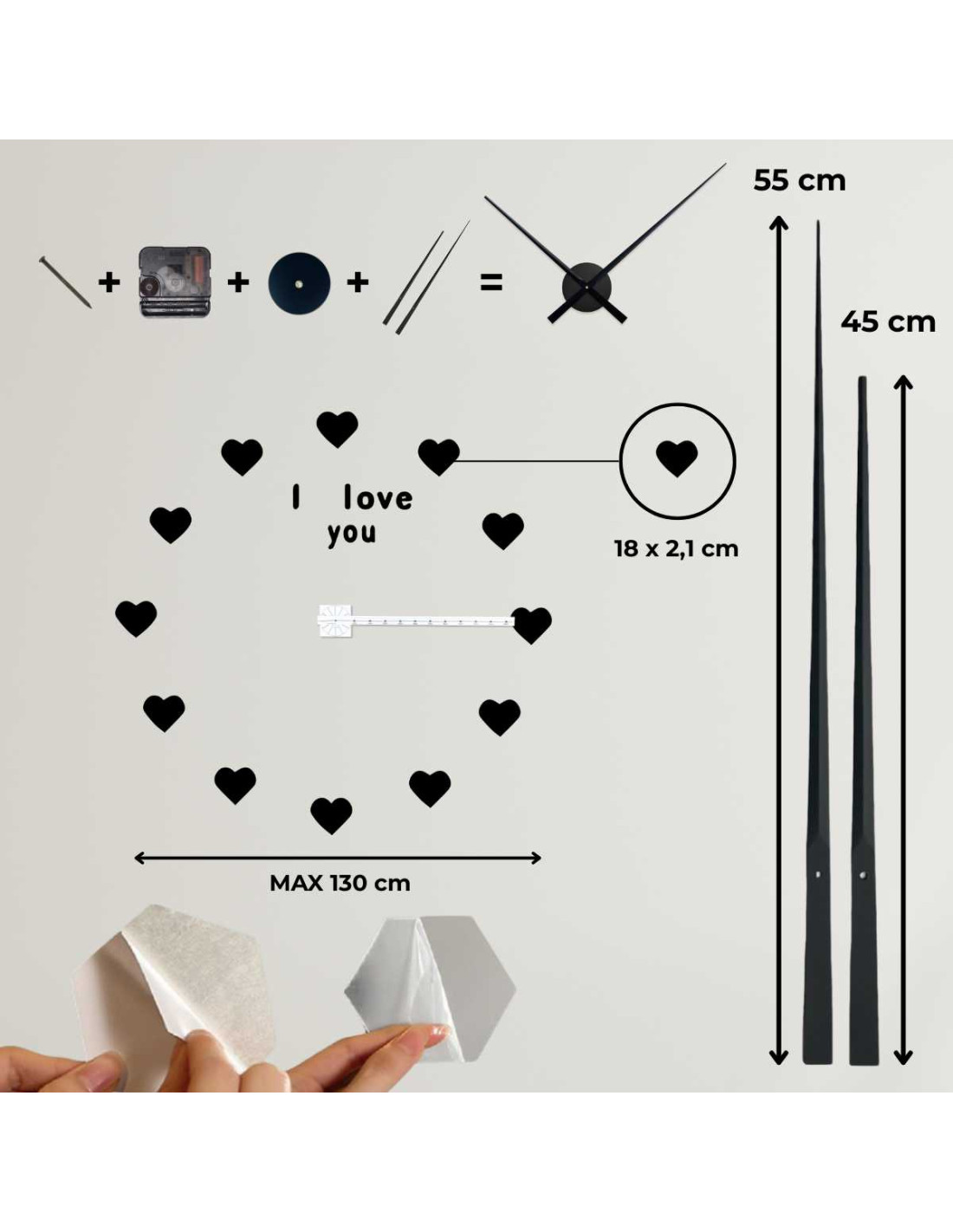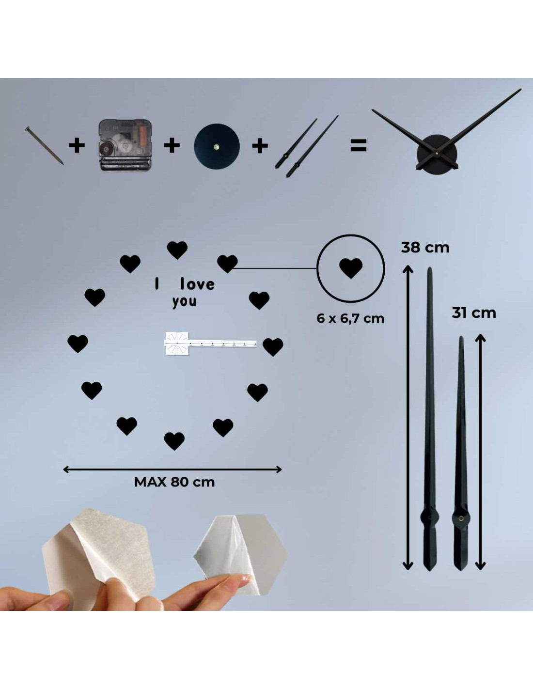 - Číslice ciferníka majú samolepiacu vrstvu, takže inštalácia je rýchla a bez vŕtania.