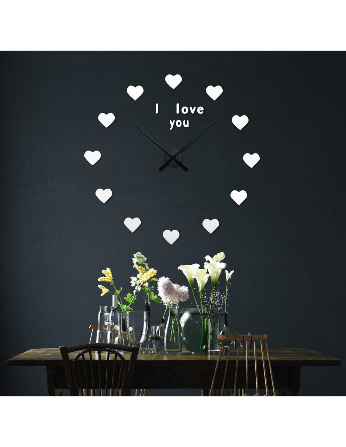 Romantické nástenné hodiny s jemným odkazom "I love you" ponúkajú vizuálny zážitok plný lásky a originality.