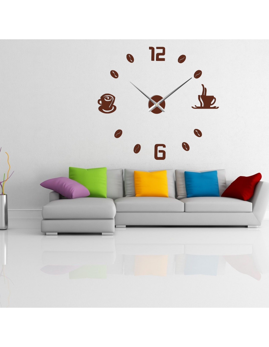 Veľké nástenné hodiny nalepovacie COFFE PLEXI