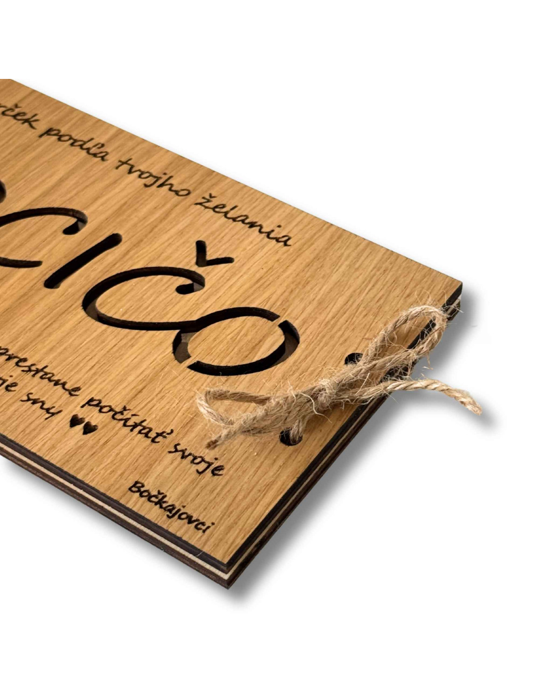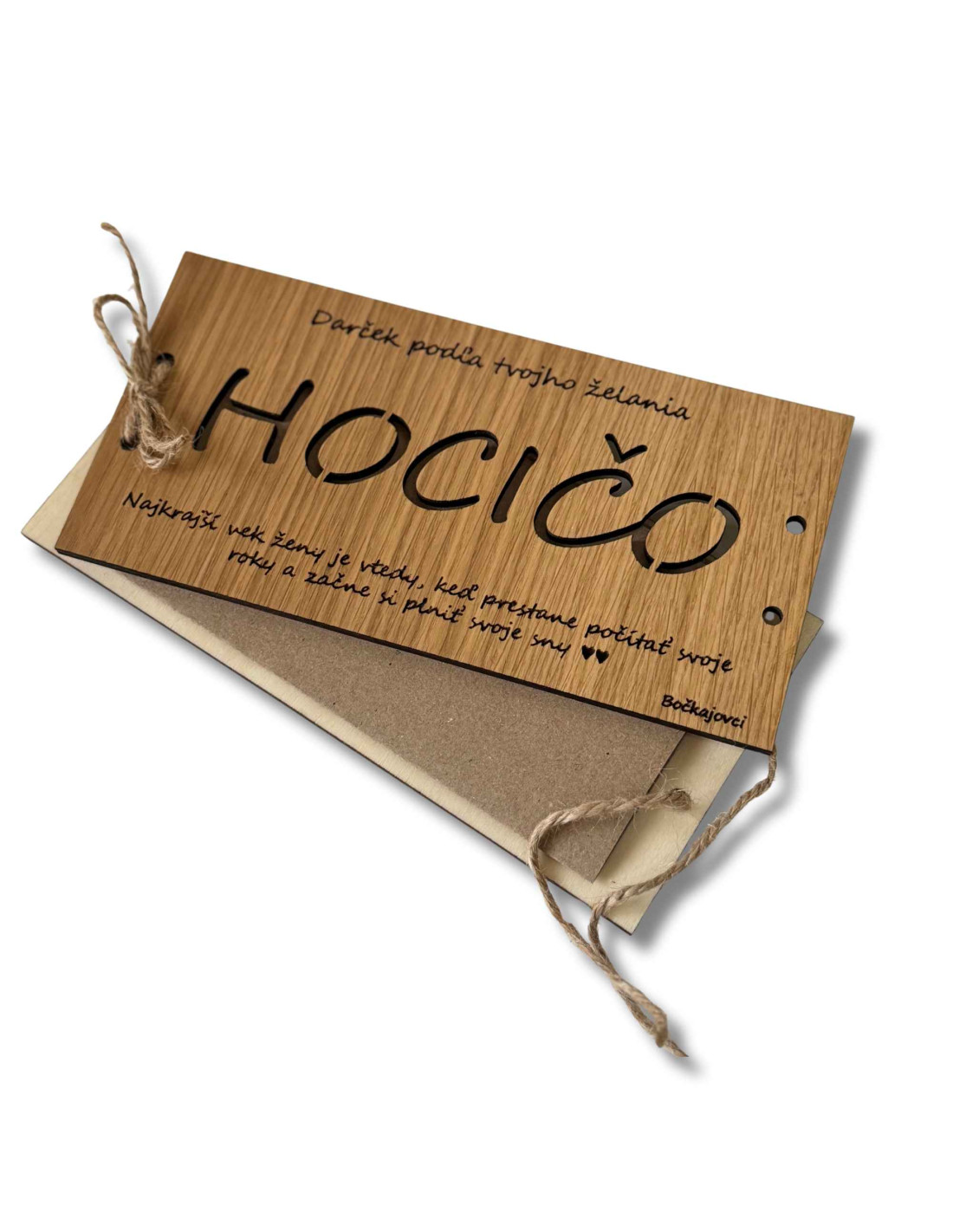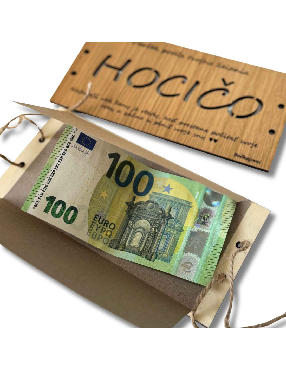 Drevená obálka na peniaze - HOCIČO 20 x 10 cm