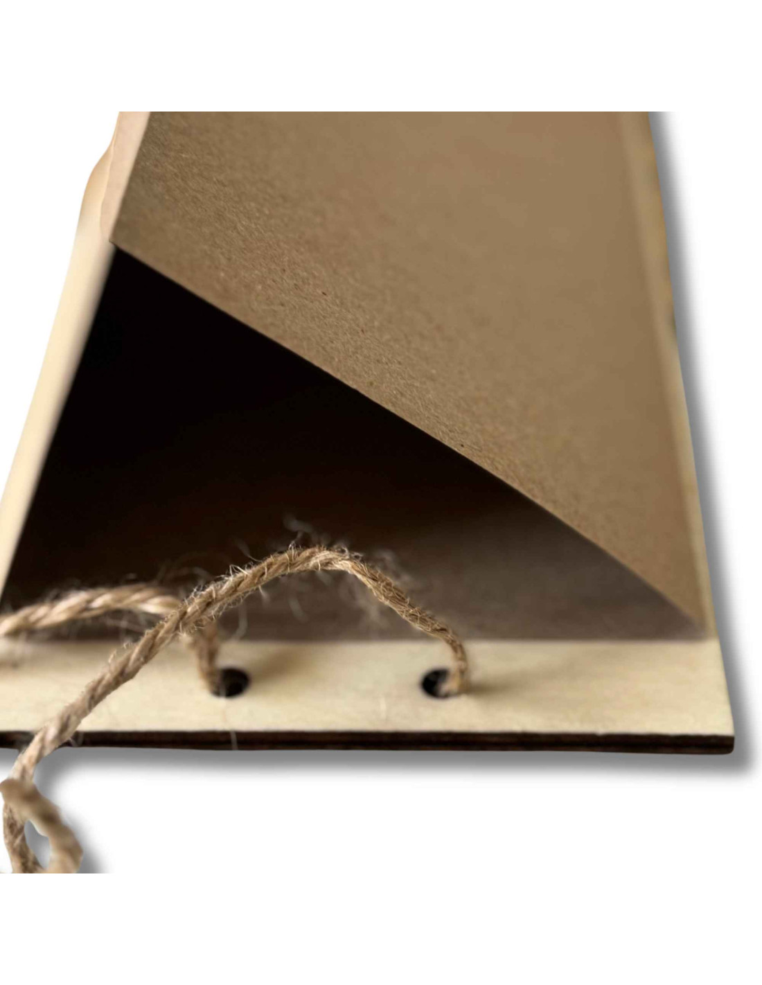 Obálka je spojená jutovým povrázkom, ktorý dodáva produktu prírodný a autentický vzhľad.