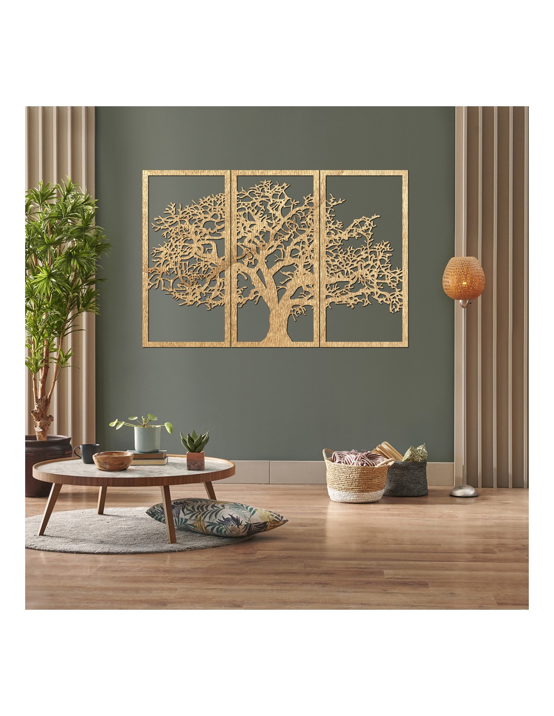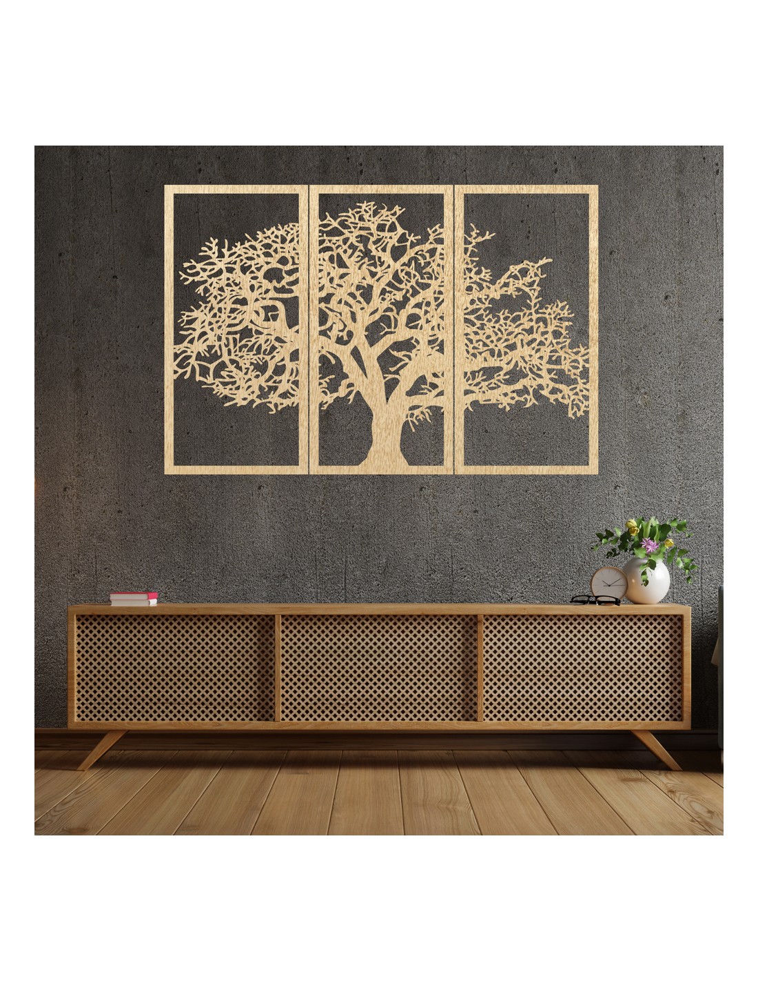Drevený nástenný obraz Strom života: Sada 3 panelov | SKOMBER