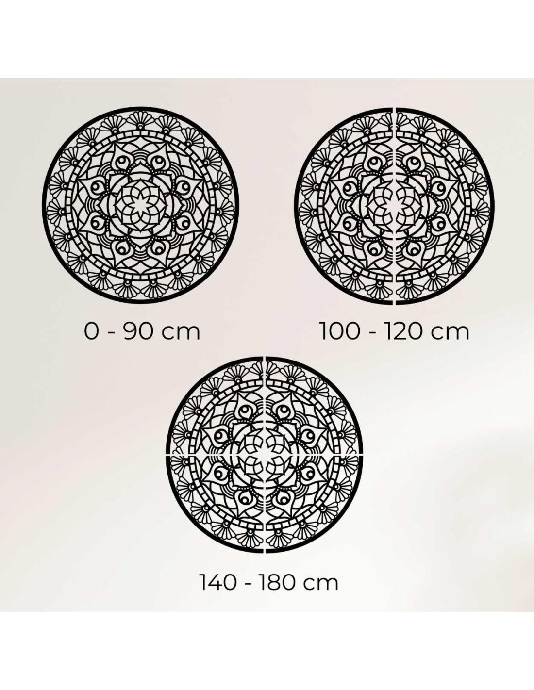 - Od 140 cm do 180 cm - dekorácia je rozrezaná na štyri časti (alebo viac)