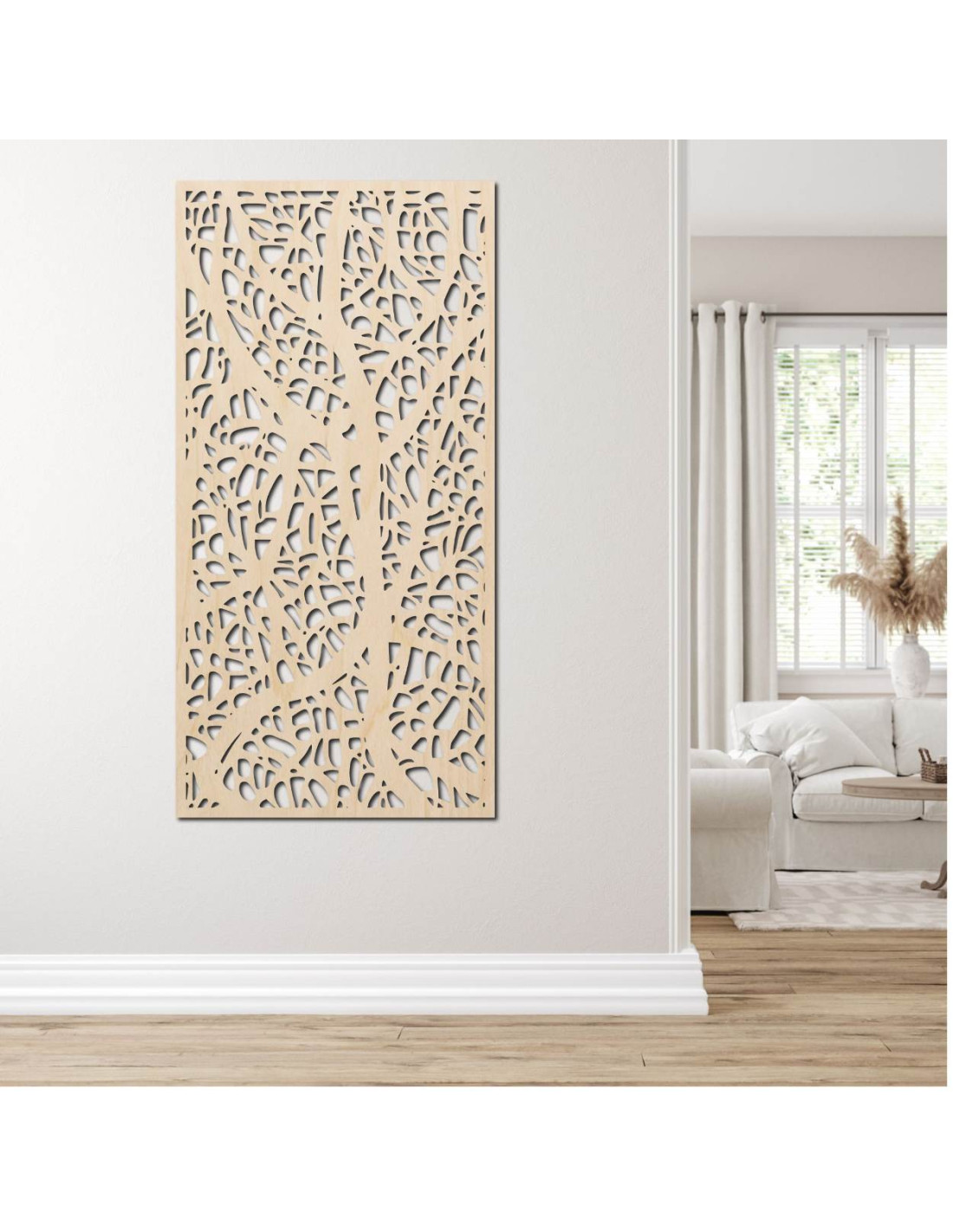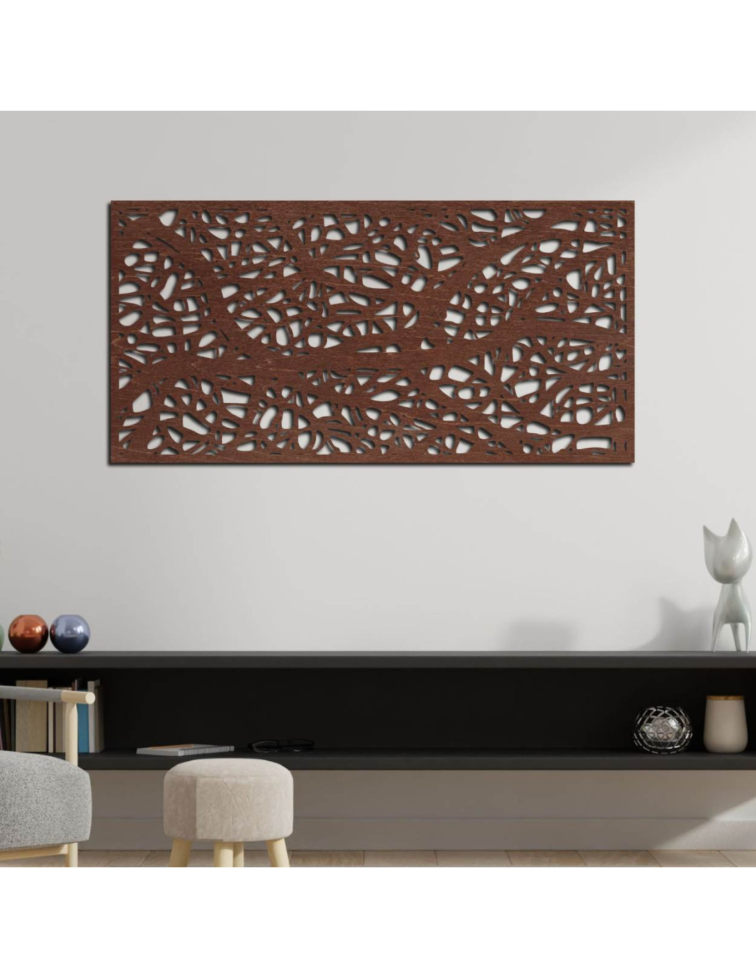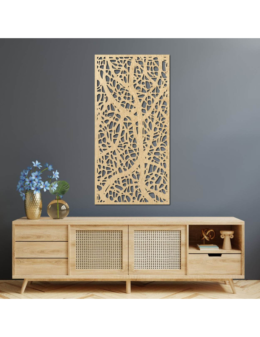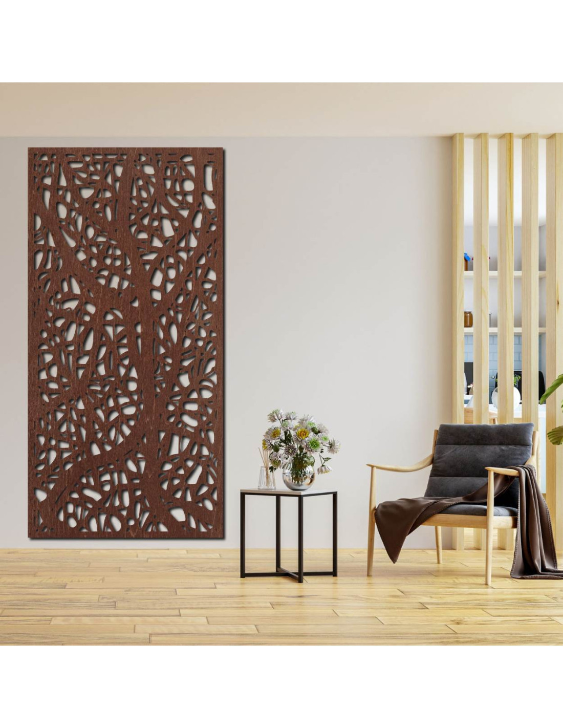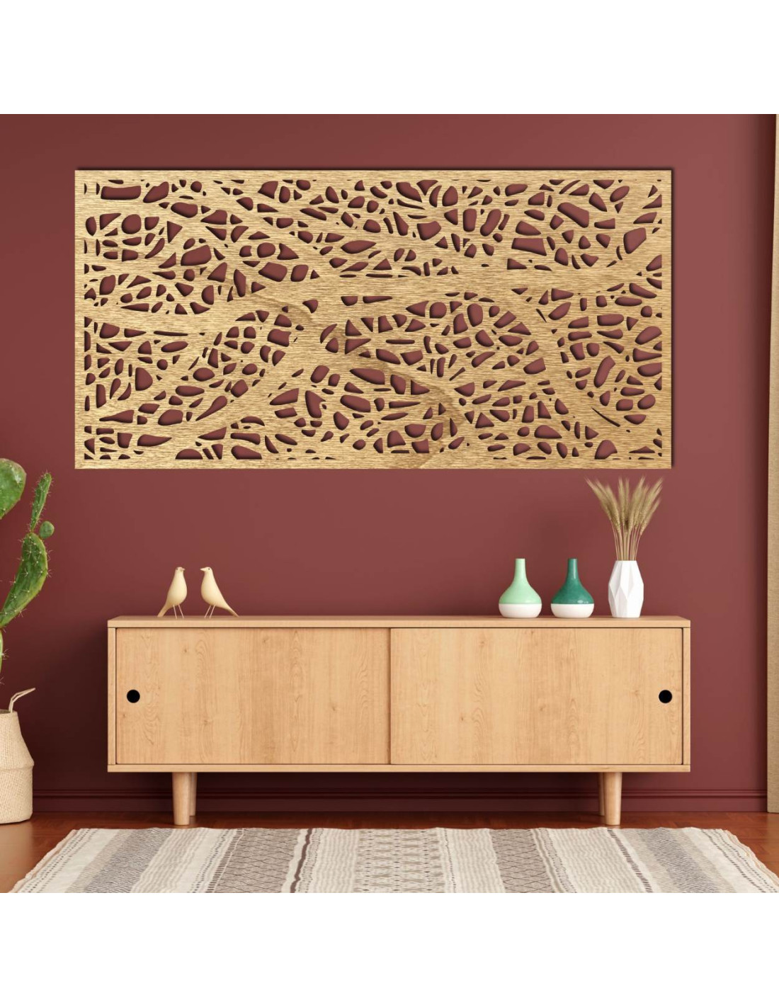 Elegantný drevený obraz z preglejky s vyrezávaným motívom stromu dodá interiéru prírodnú harmóniu a jedinečný štýl, vhodný do obývačky, spálne či kancelárie.