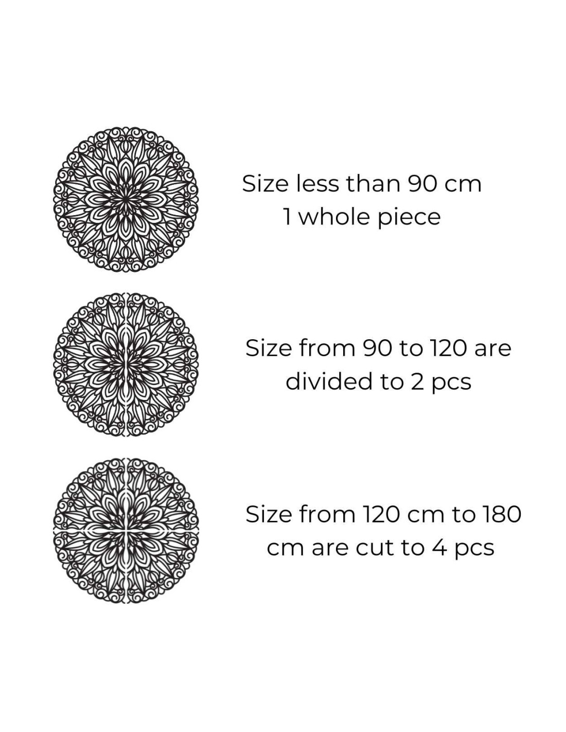 - Od 140 cm do 180 cm – rozdelená na štyri časti (alebo viac) pre zachovanie presnej geometrie vzoru.