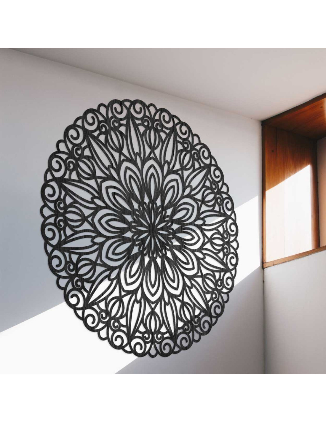 Táto drevená mandala je elegantným dizajnovým prvkom, ktorý premení každý interiér na miesto pokoja a harmónie.