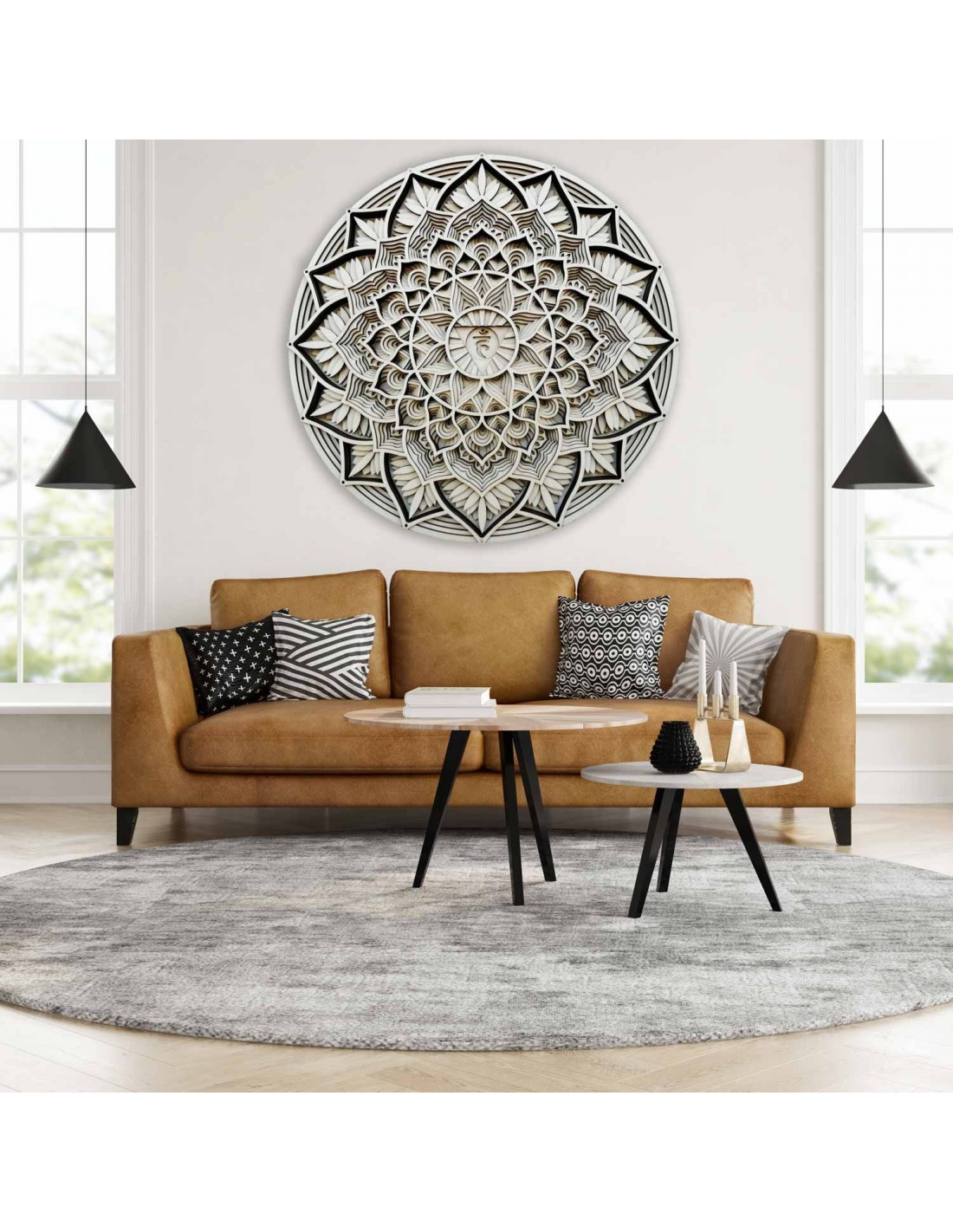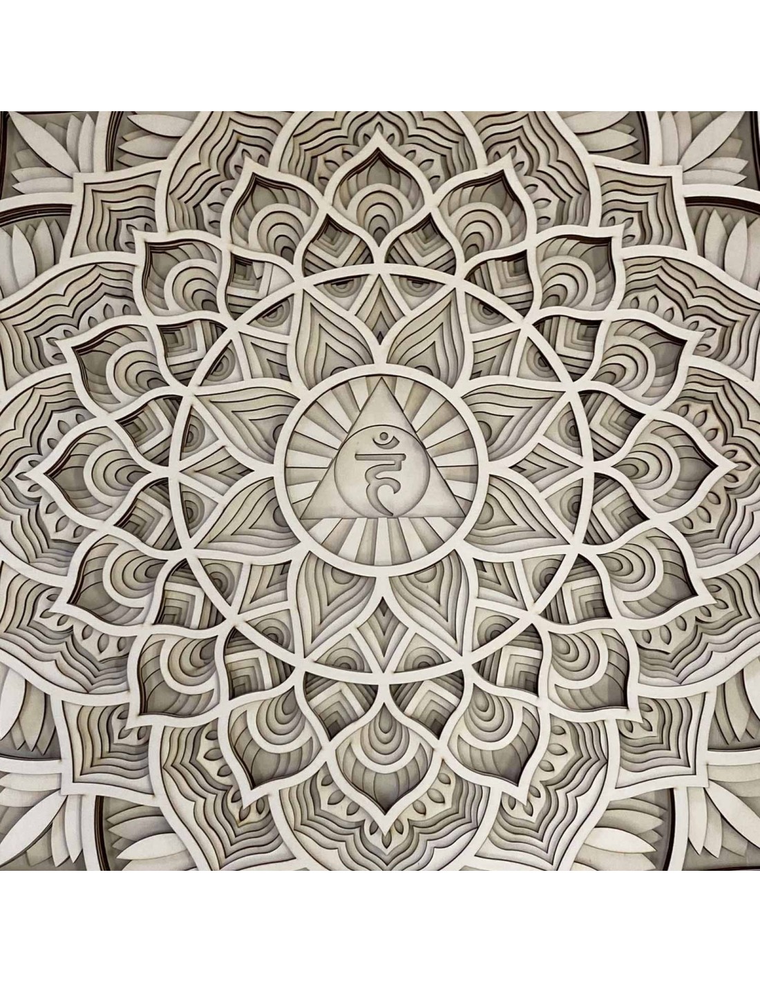 Exkluzívna a detailná mandala je zložená z niekoľkých vrstiev, ktoré spoločne vytvárajú 3D efekt. Vzory mandaly symbolizujú myšlienku, že život sa nikdy nekončí a všetko je prepojené.