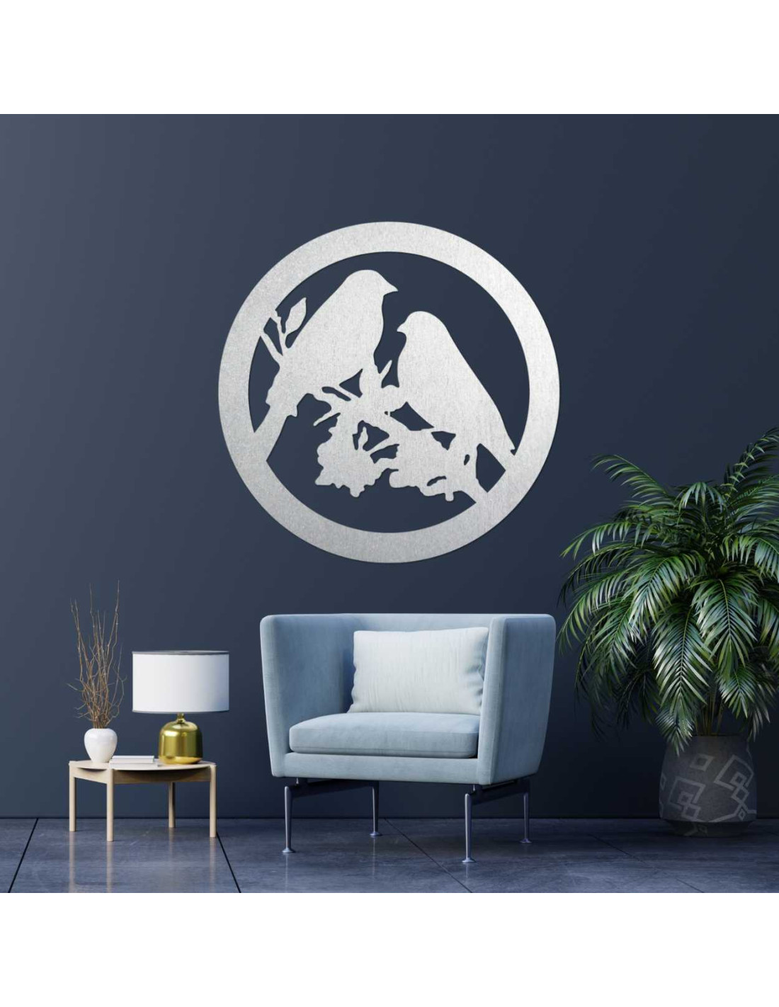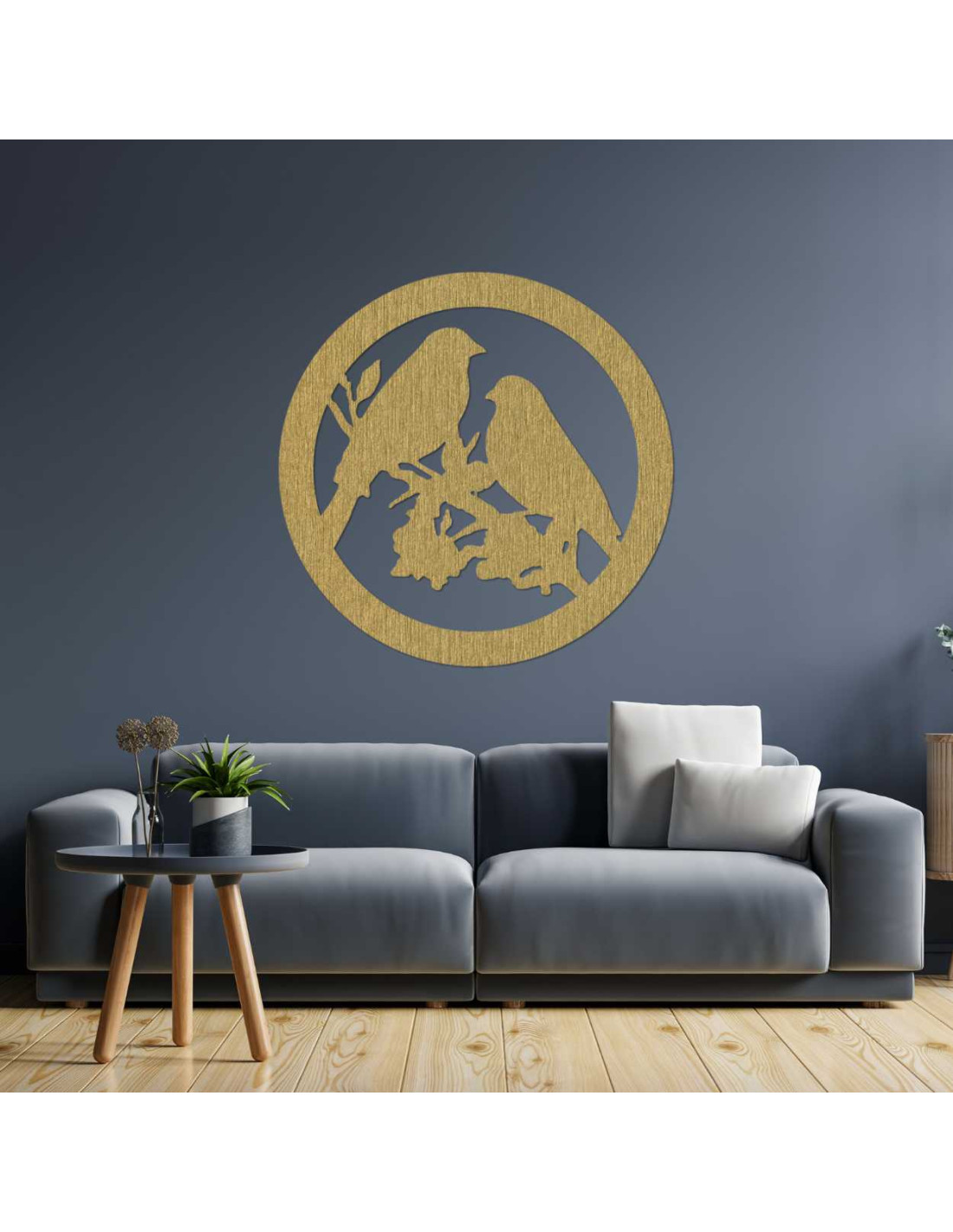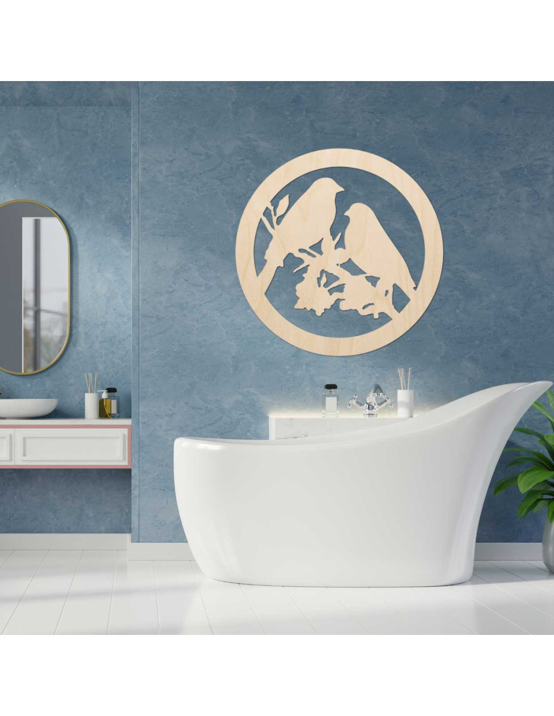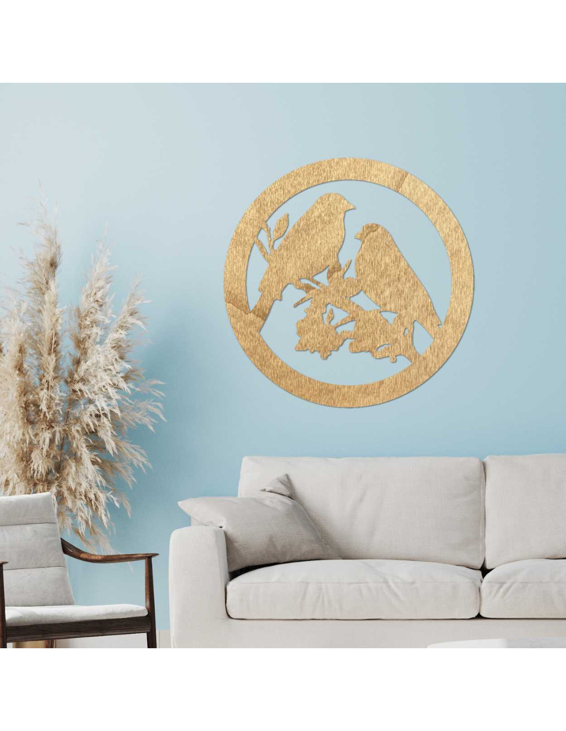 Drevený nástenná dekorácia so siluetou vtákov, kruhovým rámom a prírodným motívom prinesie do interiéru pokoj a harmóniu.