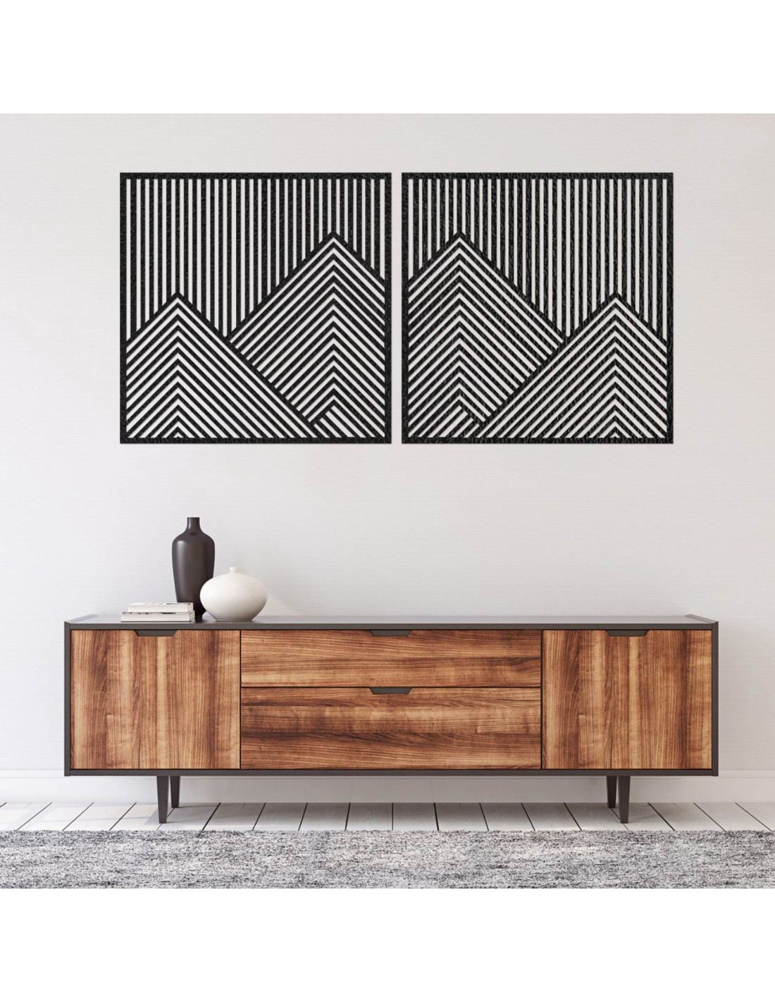 Nástenná dekorácia z dvoma s geometrickými horskými líniami | LERA