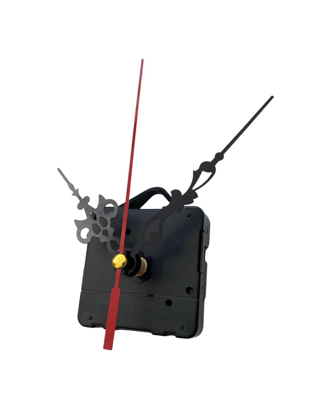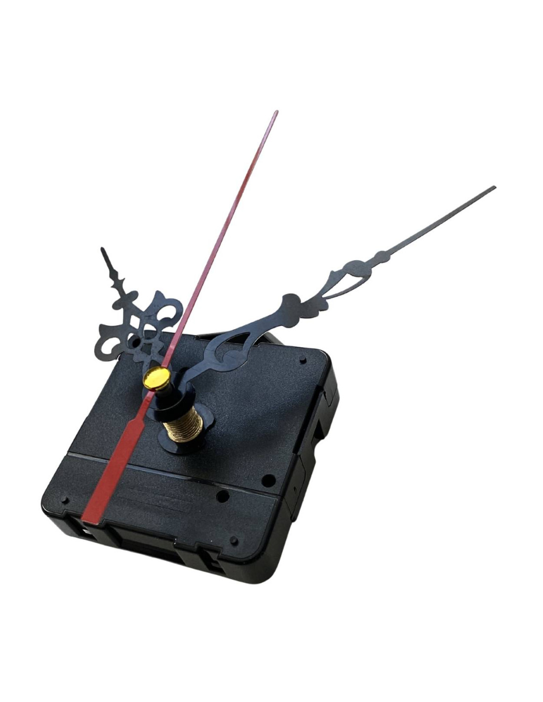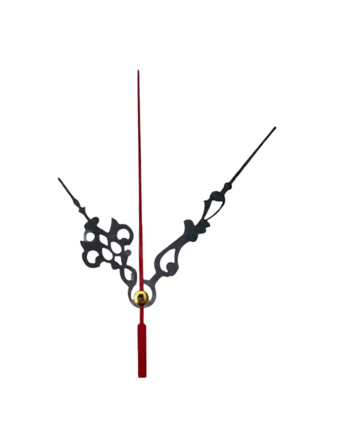 Hliníkové ručičky na nástenné hodiny v čiernej farbe s červenou sekundovou ručičkou.