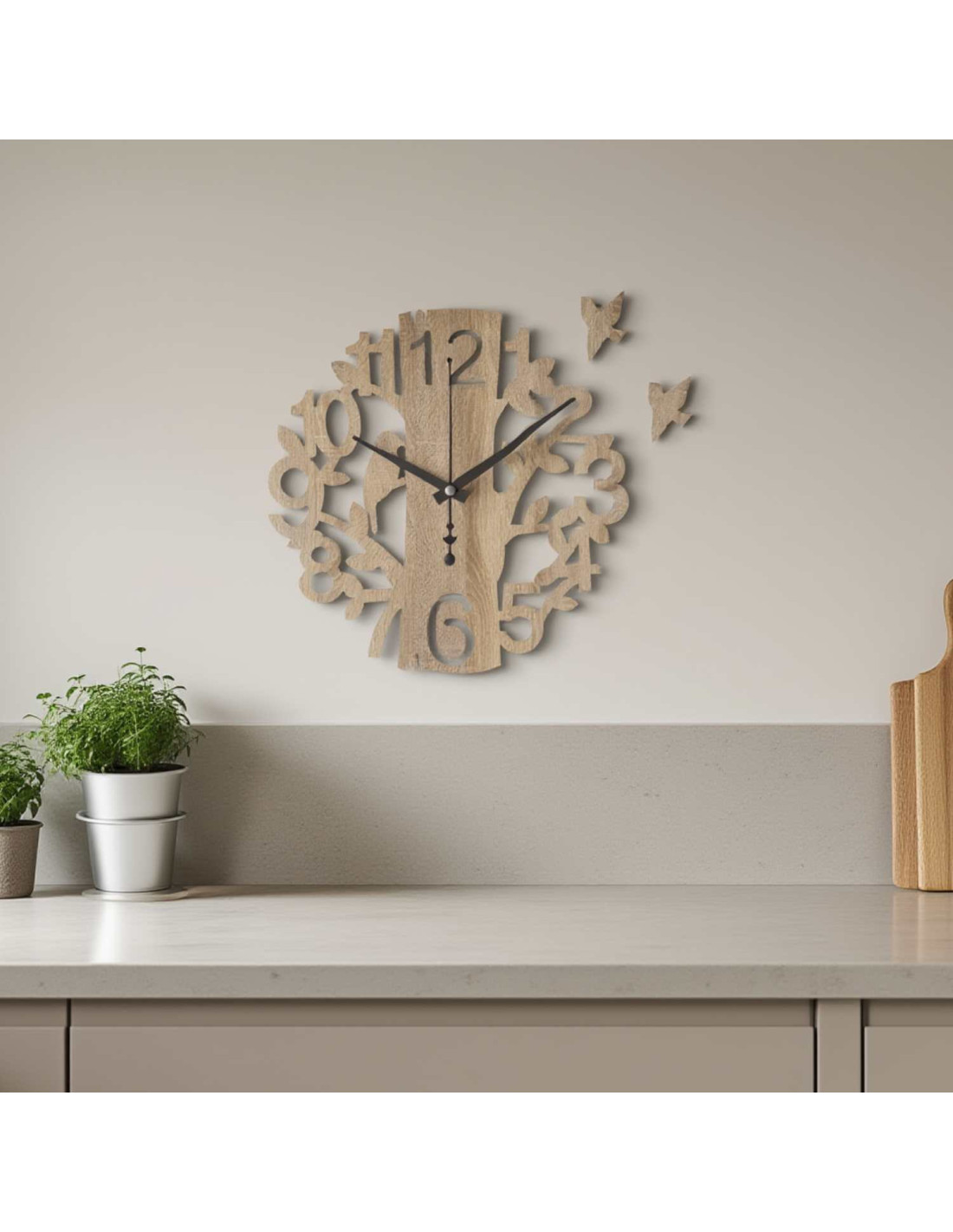Hodiny Vtáčik sú drevené nástenné hodiny, ktoré spájajú presné meranie času s prírodnou estetikou.