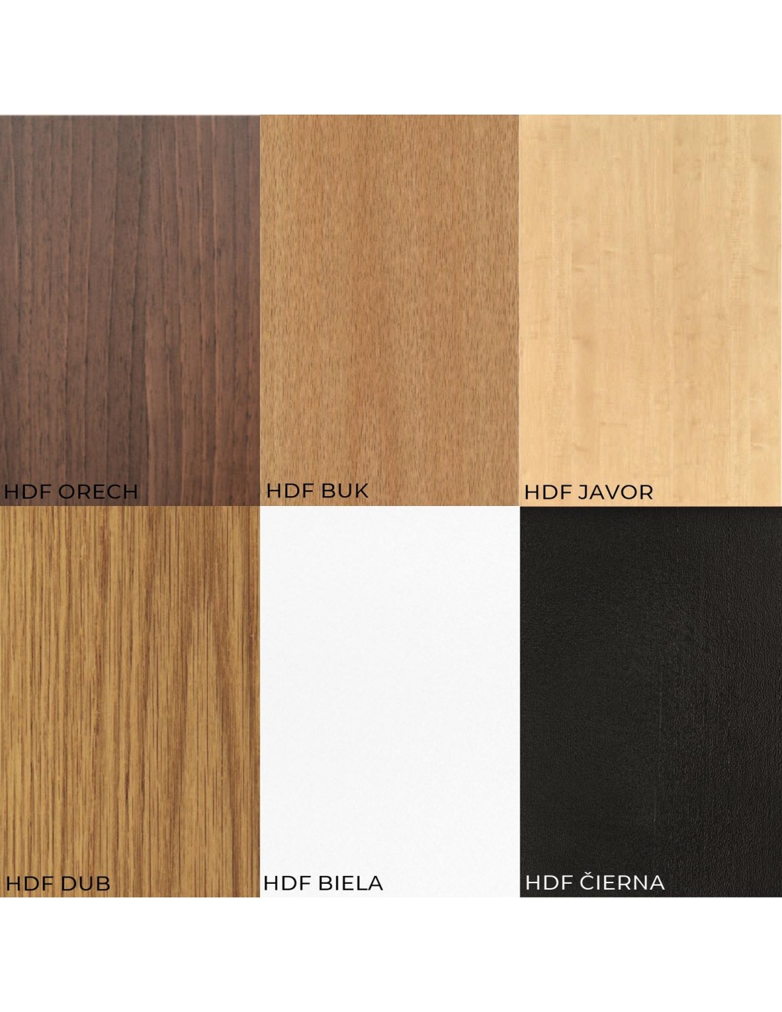 • Farby: dub, buk, javor, orech, biela alebo čierna