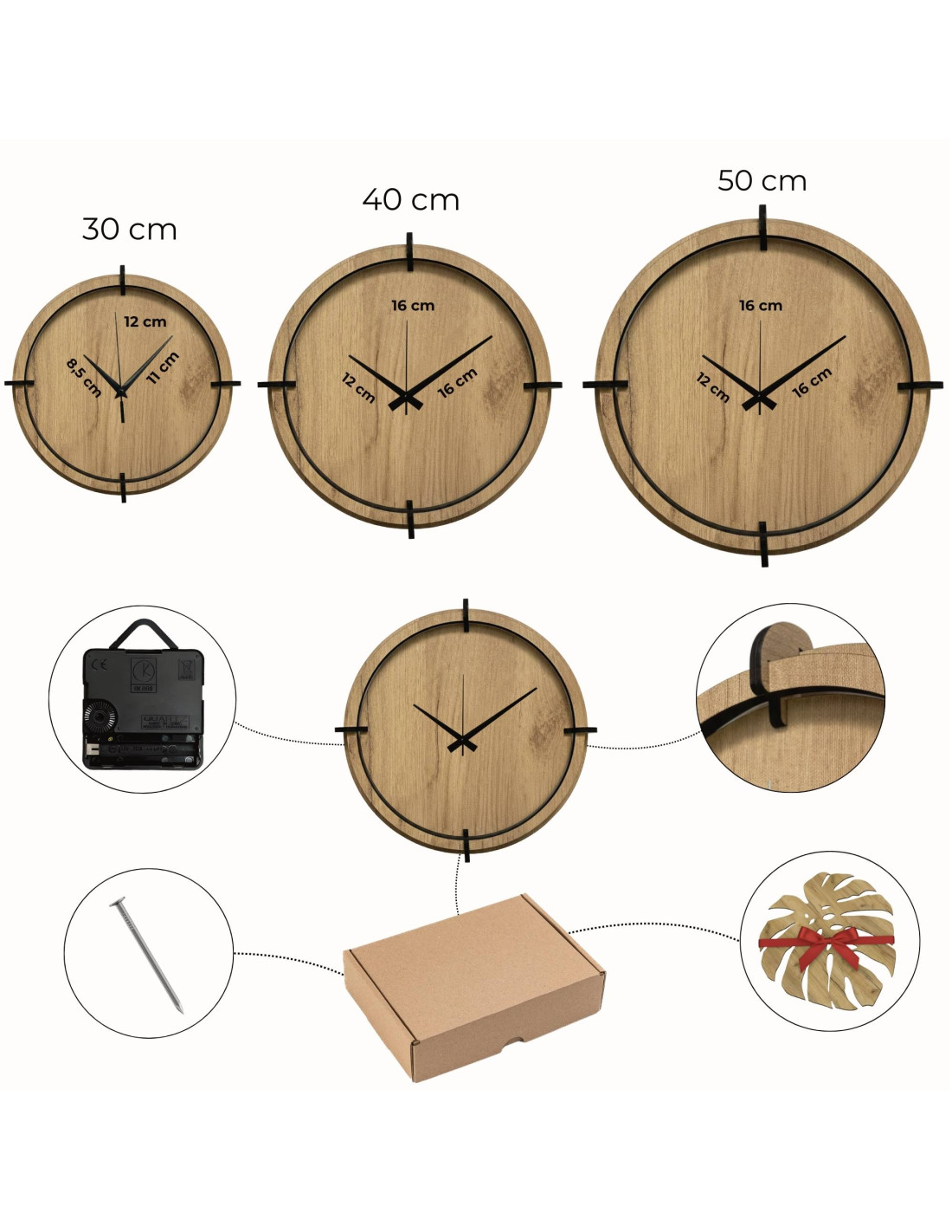 - Priemer hodín: na výber 30 cm, 40 cm alebo 50 cm