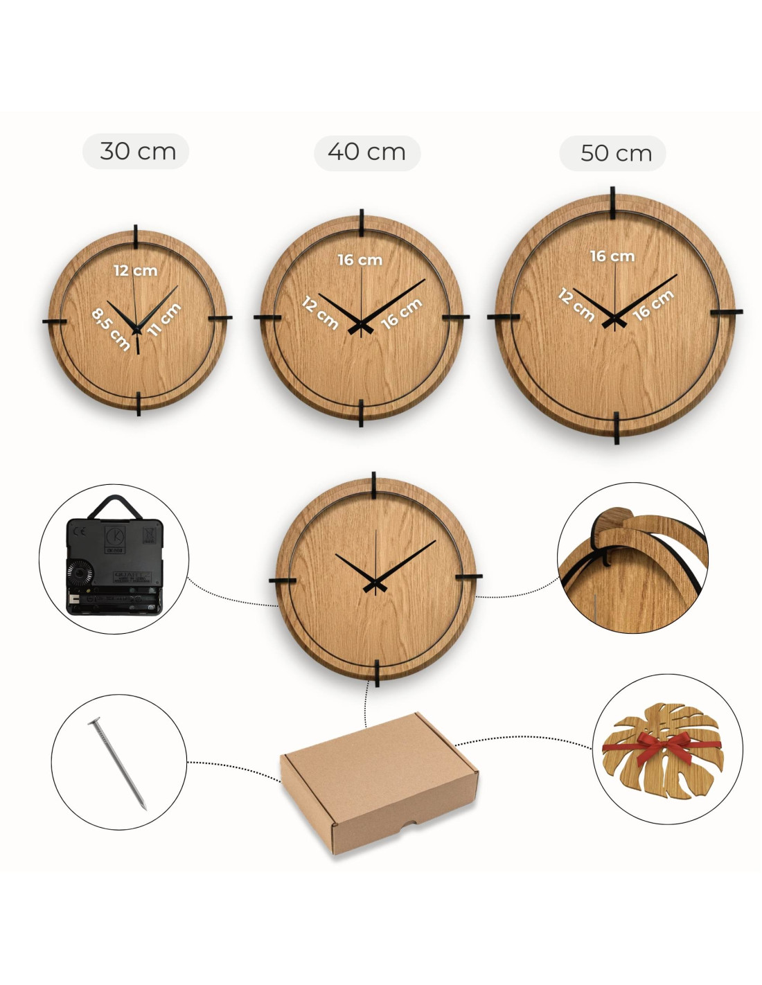 Čisté línie, minimalistické indexy a výrazné ručičky vytvárajú vyvážený vzhľad, ktorý sa hodí do obývačky, spálne, kuchyne, pracovne či kancelárie.