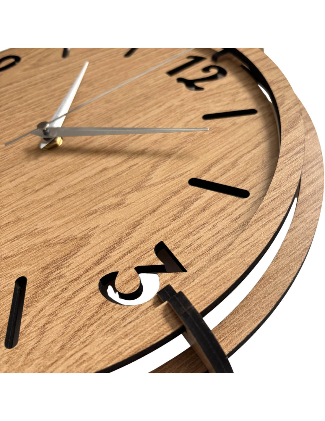 Tieto nástenné hodiny z HDF dreveného materiálu spájajú moderný materiál s poctivým remeslom.