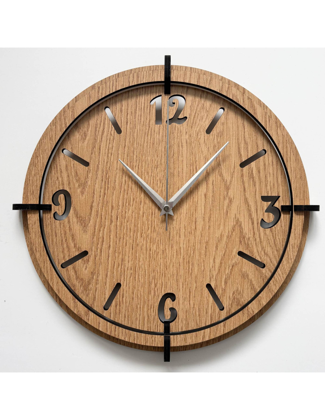 Či už hľadáte moderné nástenné hodiny do interiéru v prírodnom, industriálnom alebo minimalistickom štýle, tieto drevené hodiny s výraznými číslami a tmavými detailmi vnesú do vášho priestoru štýl, eleganciu a nadčasový charakter.