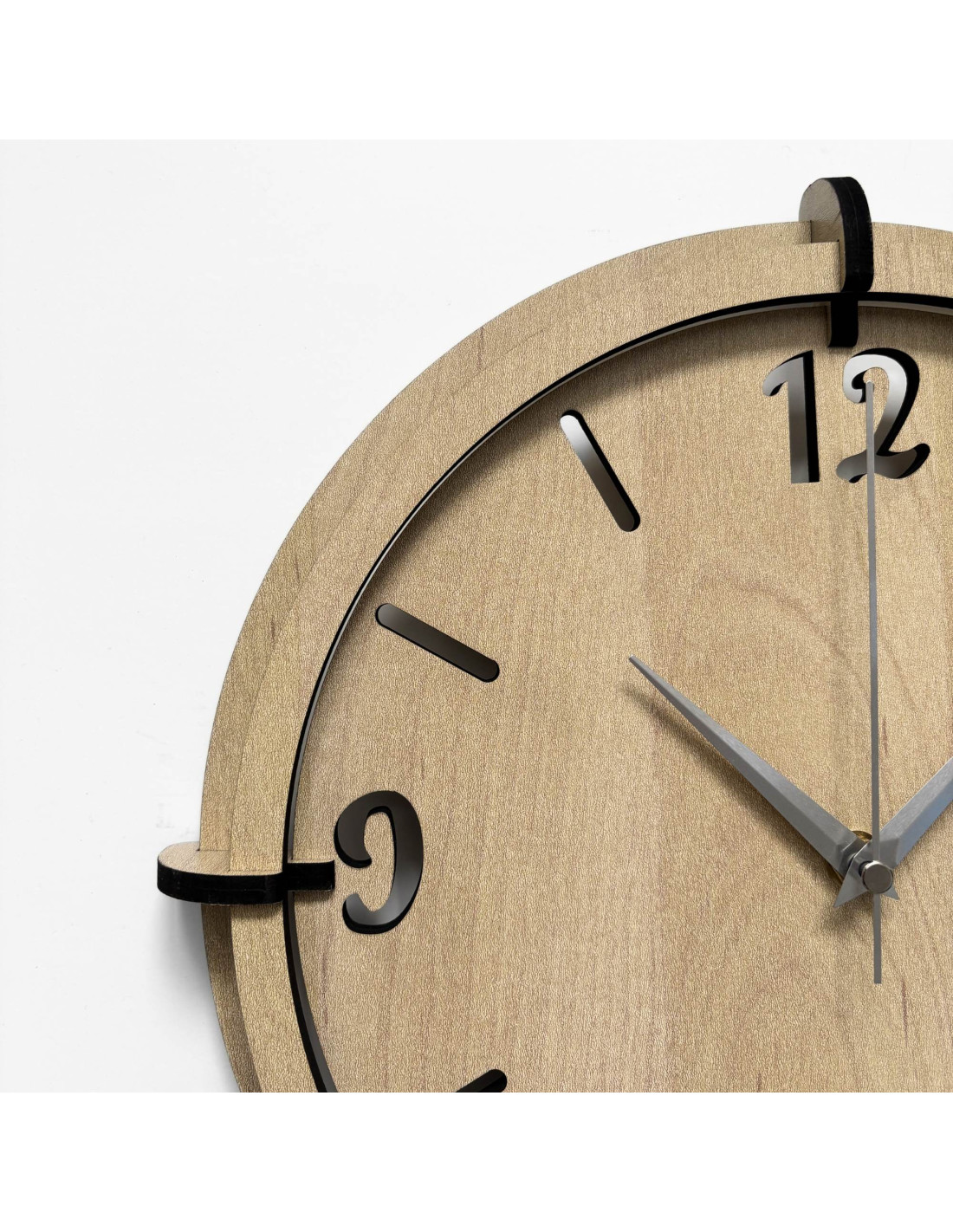 Kombinácia prirodzenej kresby dreva a priestorovo vystúpených čísiel vytvára sofistikovaný vzhľad, ktorý pôsobí luxusne a zároveň prirodzene.