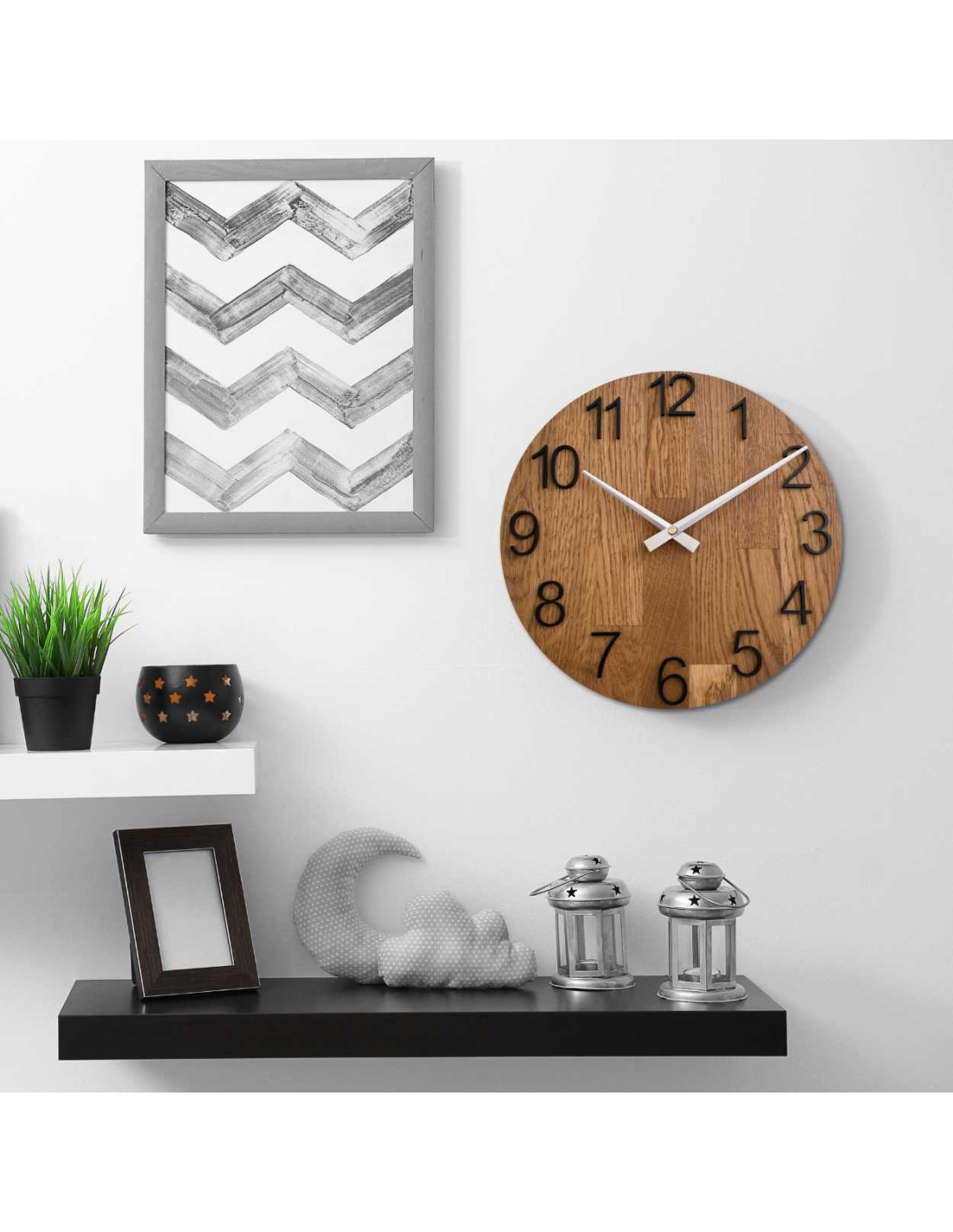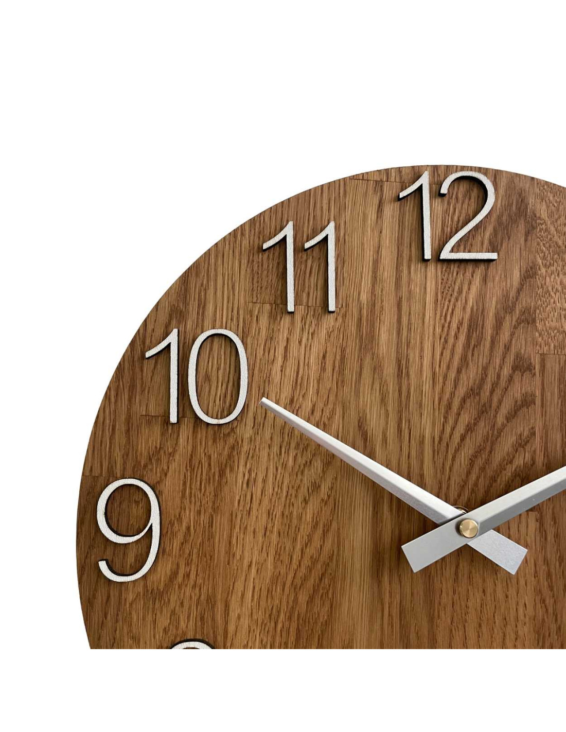 - Prírodný a elegantný dizajn: Kombinácia dubového dreva a kovových ručičiek vytvára moderný, no zároveň nadčasový vzhľad.