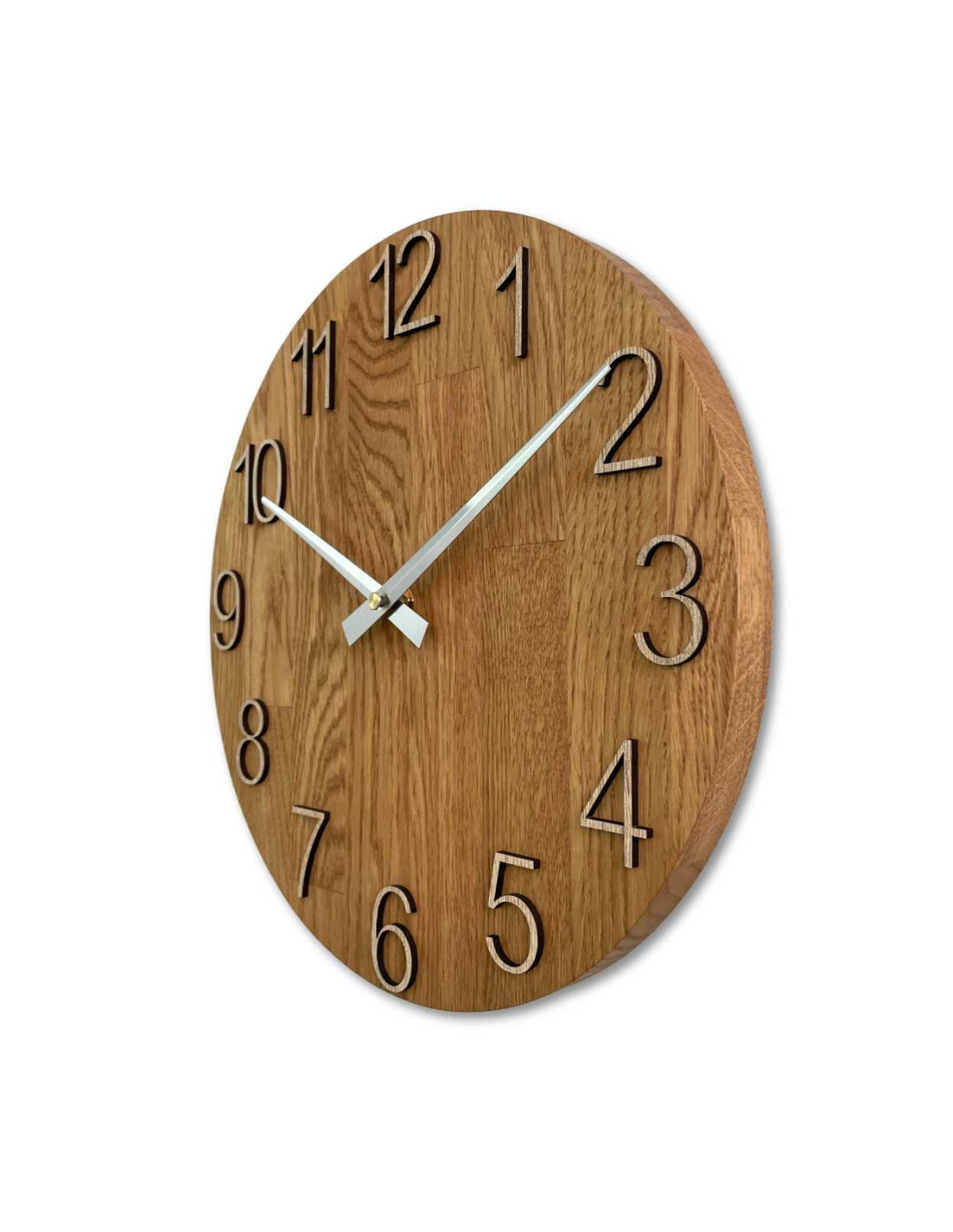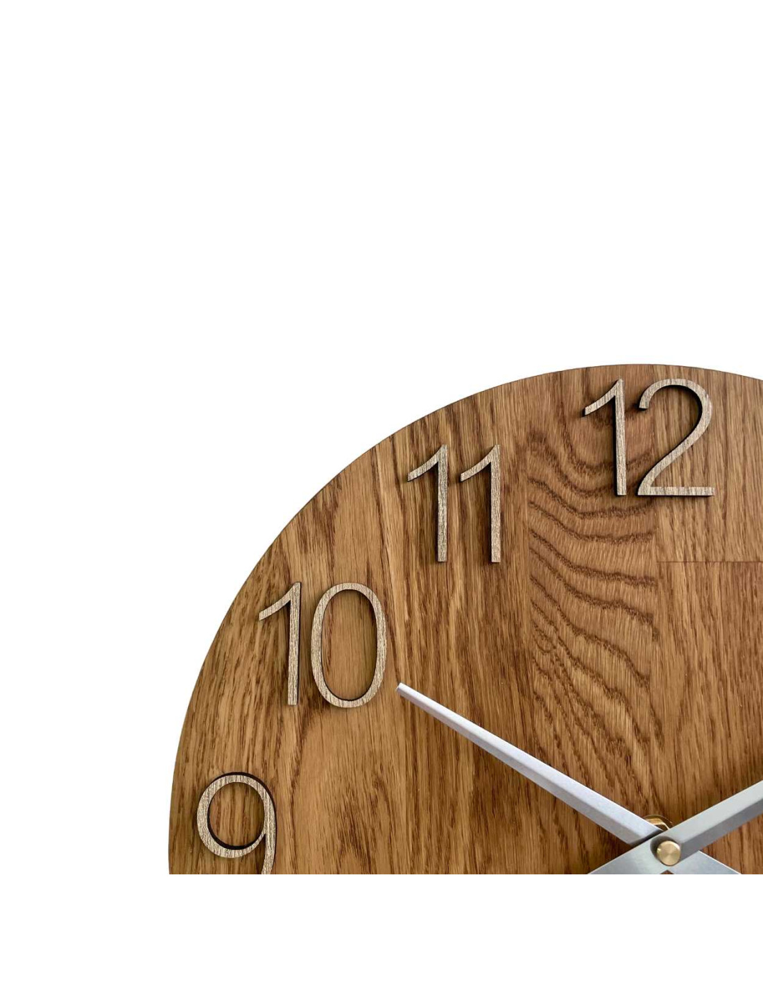 Každé hodiny vznikajú z masívnych dubových panelov, ktoré najprv presne vyrežeme do požadovaného tvaru a veľkosti pomocou CNC technológie.