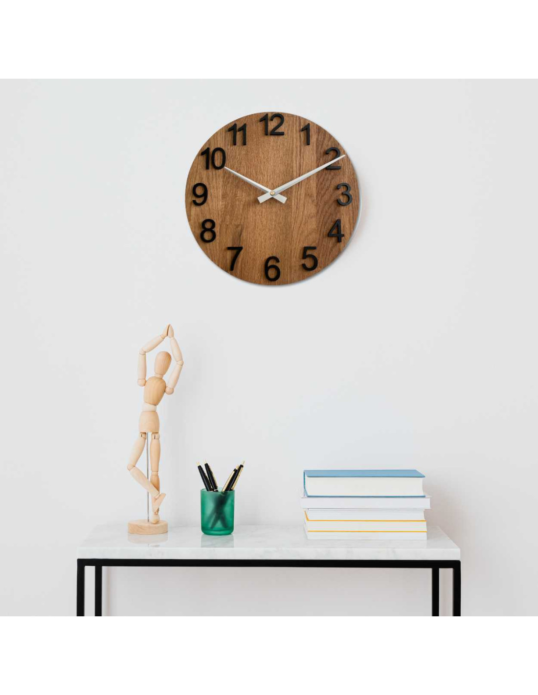 - Elegantný dizajn - Kombinácia dubového dreva a kovových ručičiek vytvára moderný, no zároveň nadčasový vzhľad.
