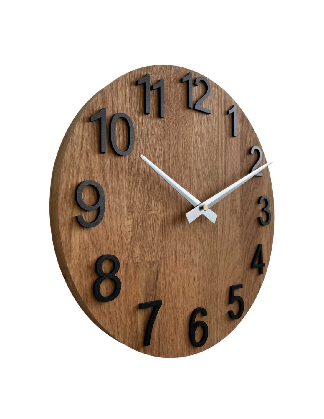 Každé hodiny vznikajú z masívnych dubových panelov, ktoré najprv presne vyrežeme do požadovaného tvaru a veľkosti pomocou CNC technológie.