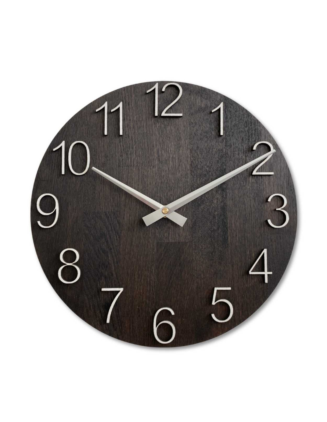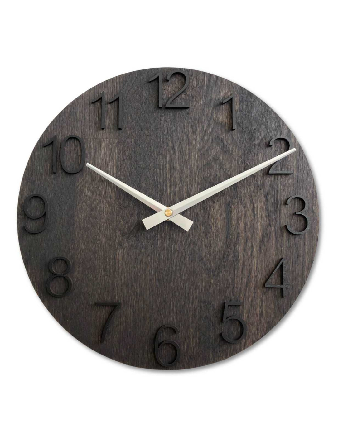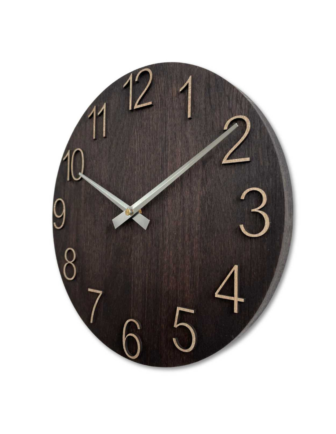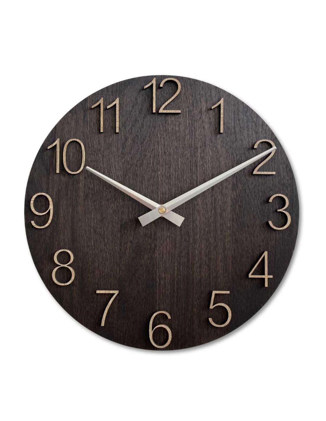 Vyrezávané číslice a jemný minimalistický dizajn zvýraznia prirodzenú krásu dreva.