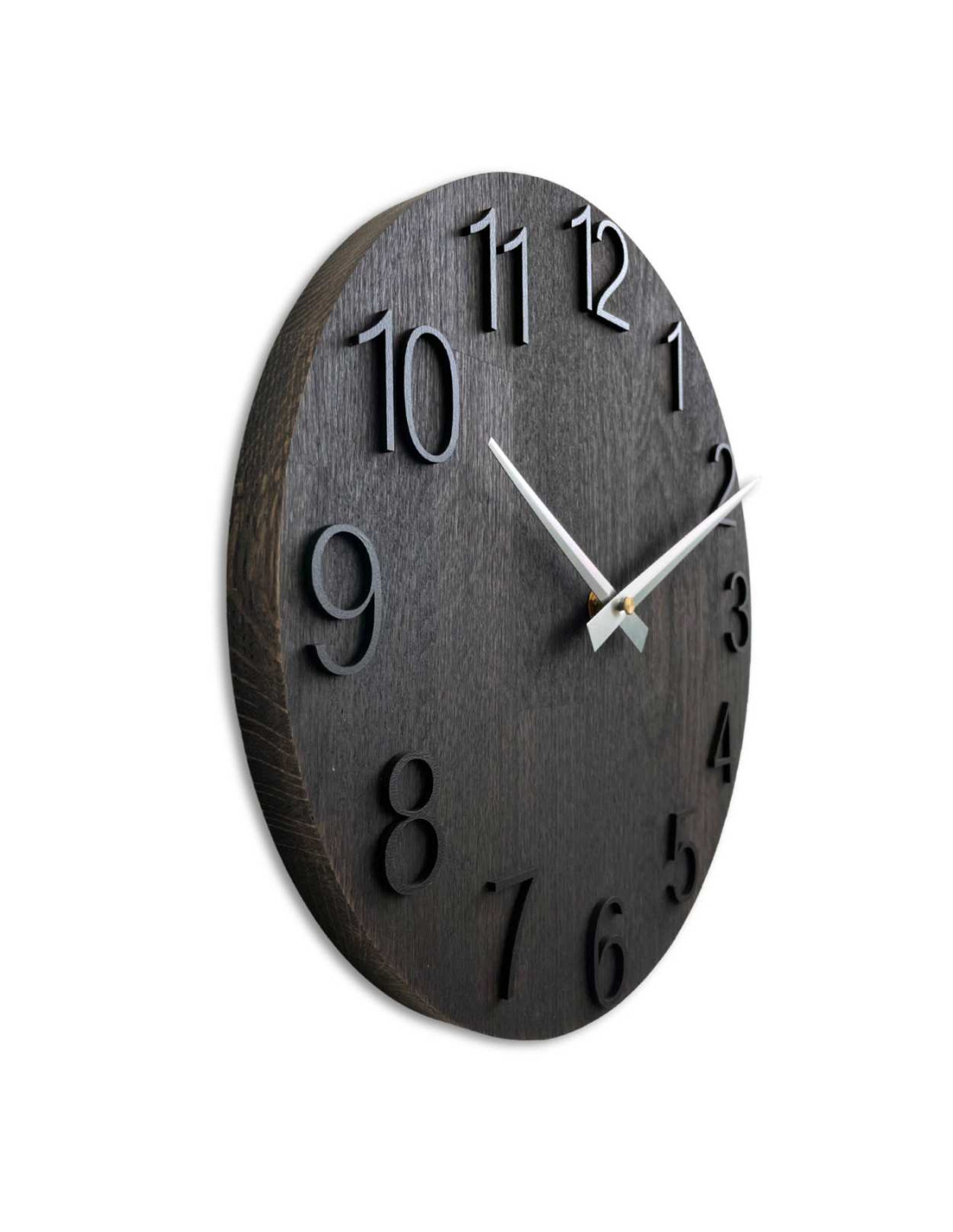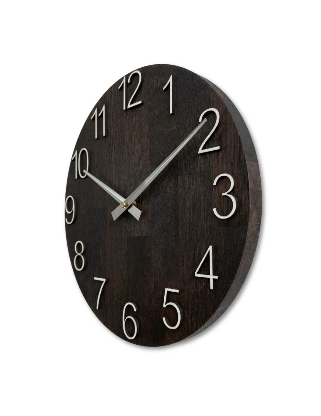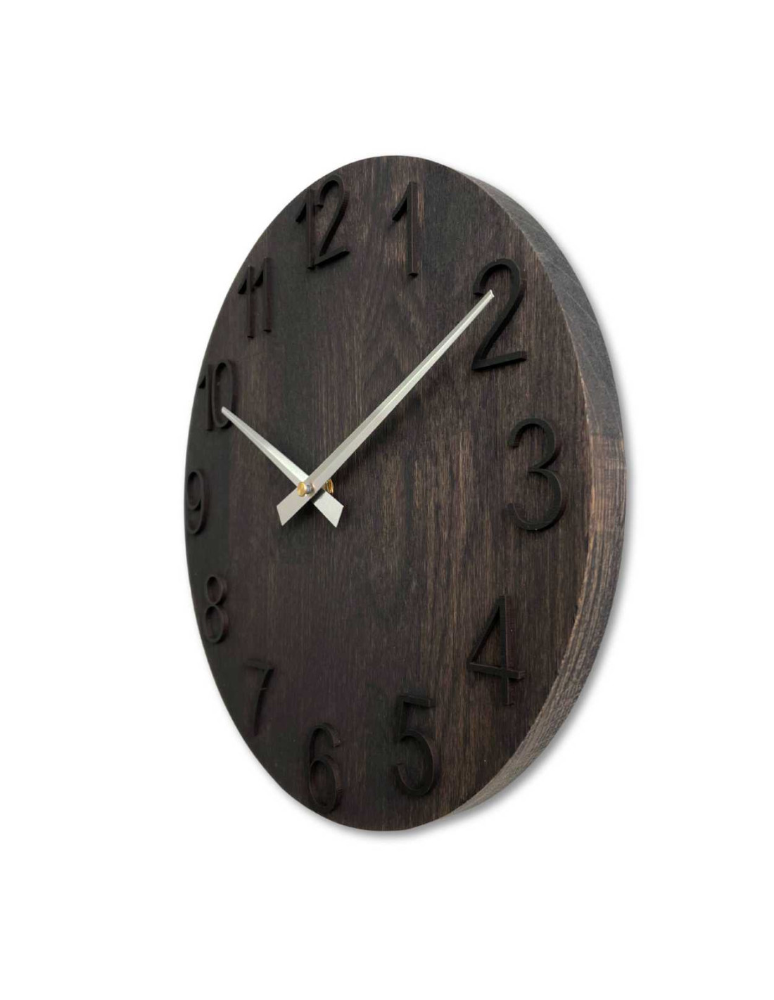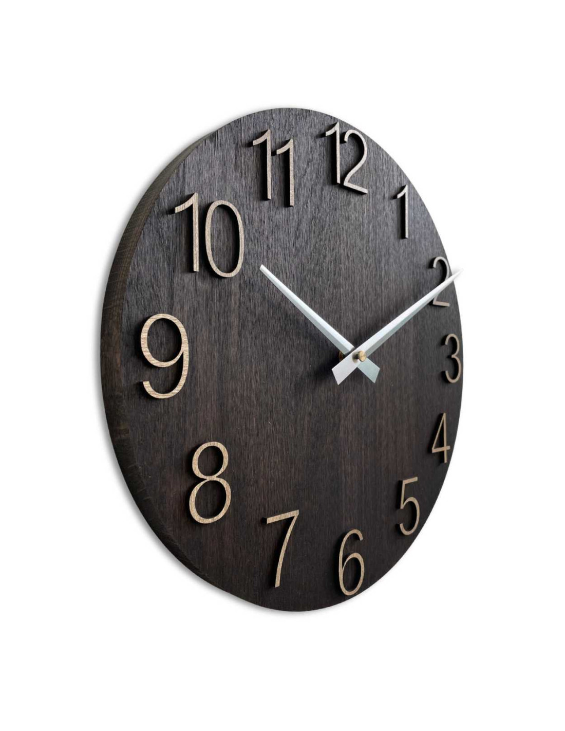 Vyrezávané číslice a jemný minimalistický dizajn zvýraznia prirodzenú krásu dreva.