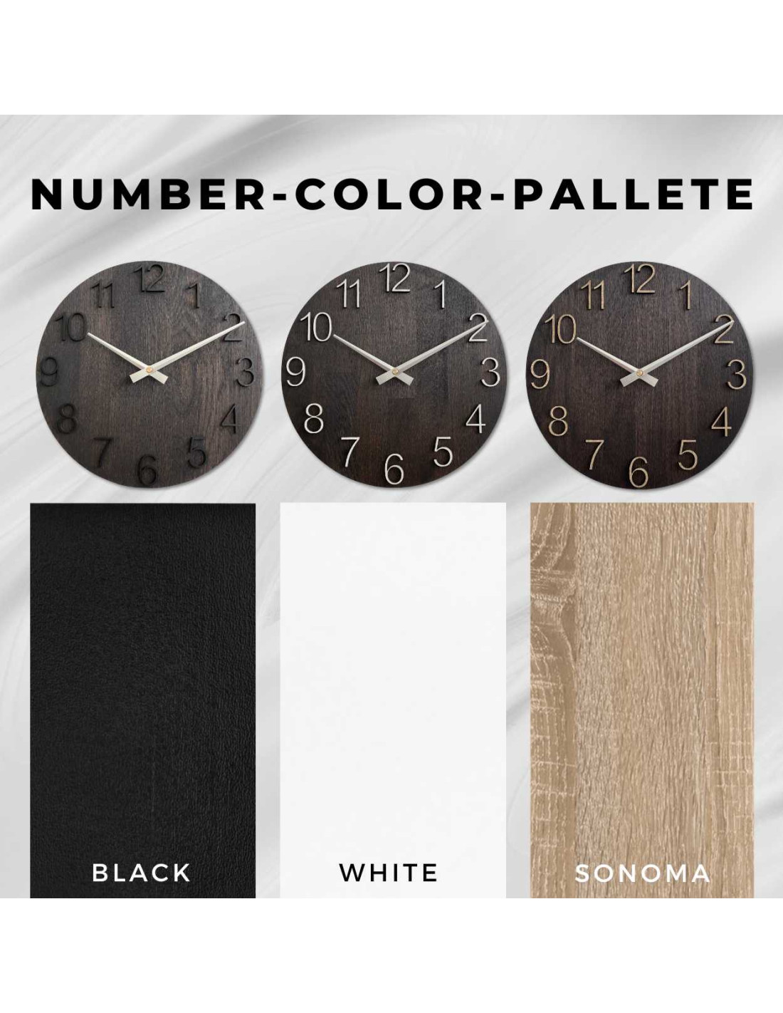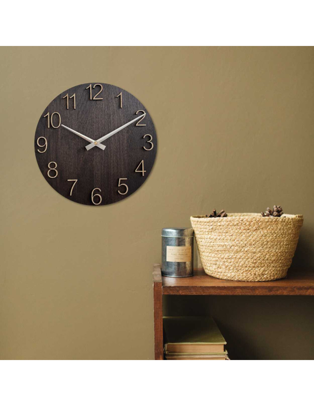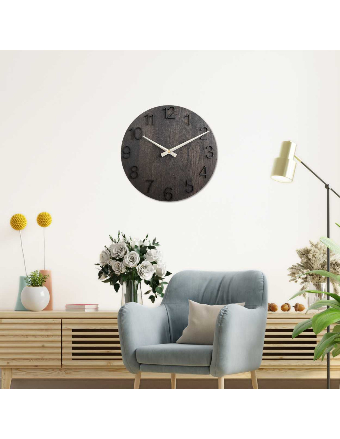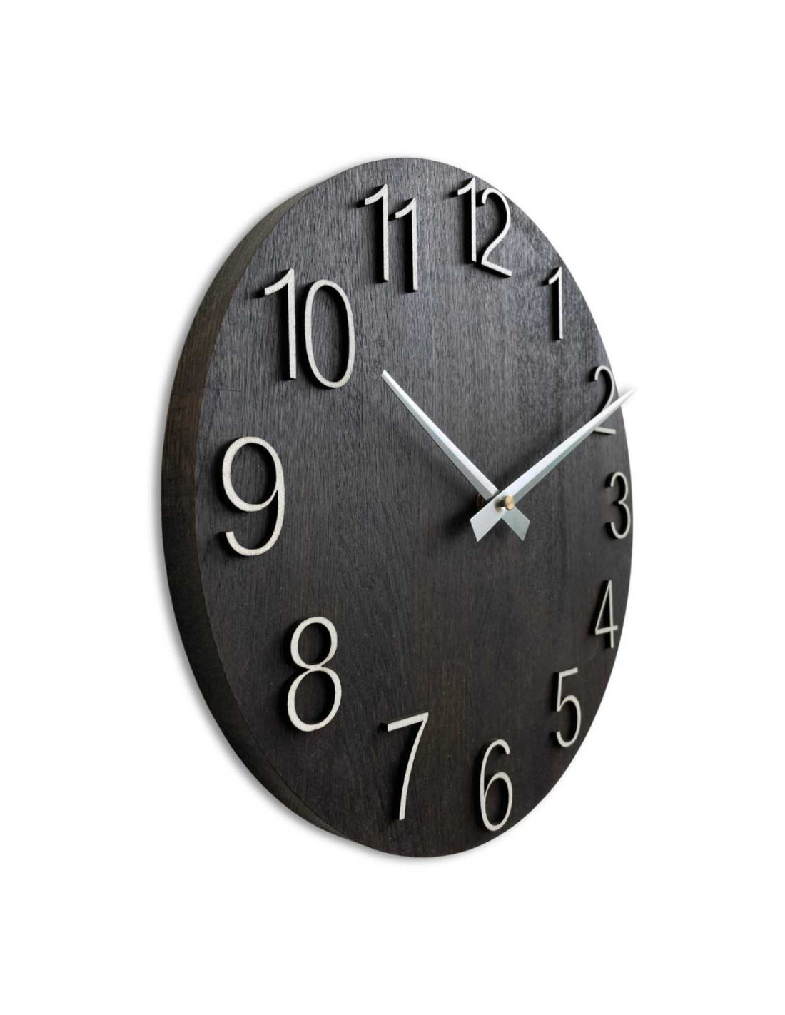 Vyrezávané číslice a jemný minimalistický dizajn zvýraznia prirodzenú krásu dreva.
