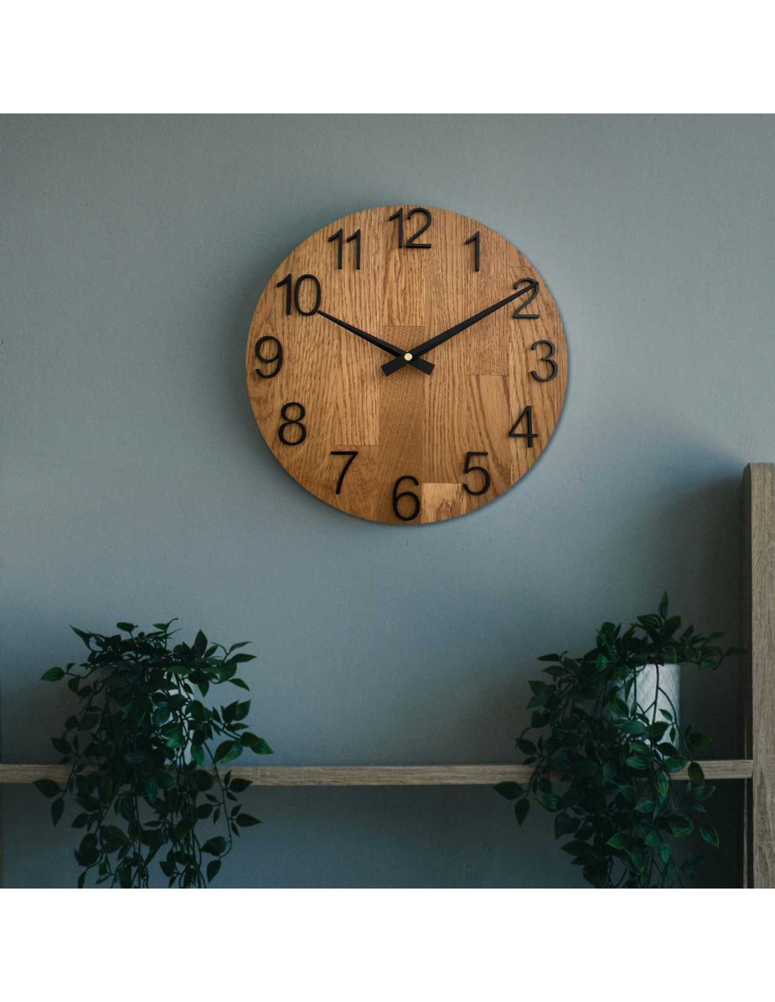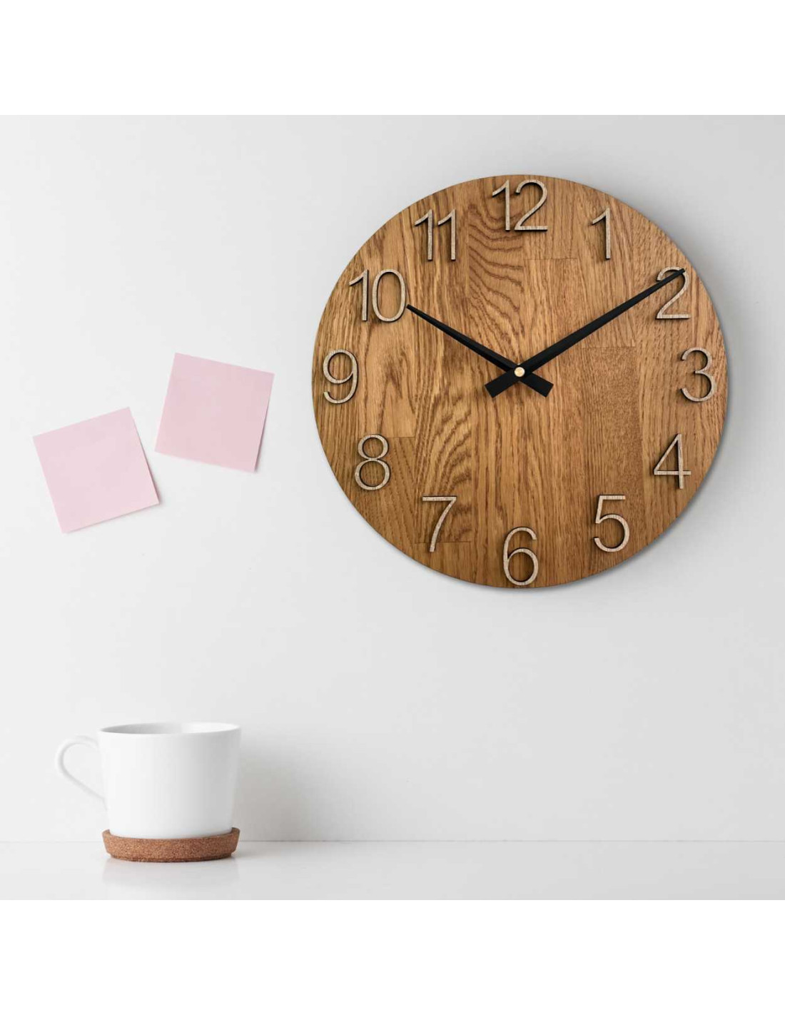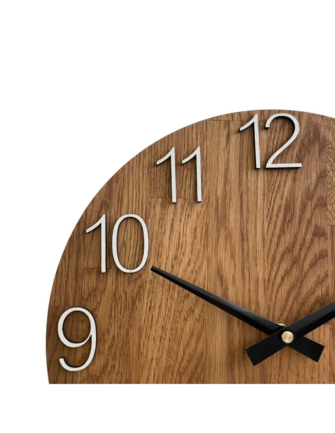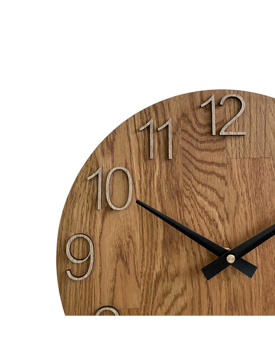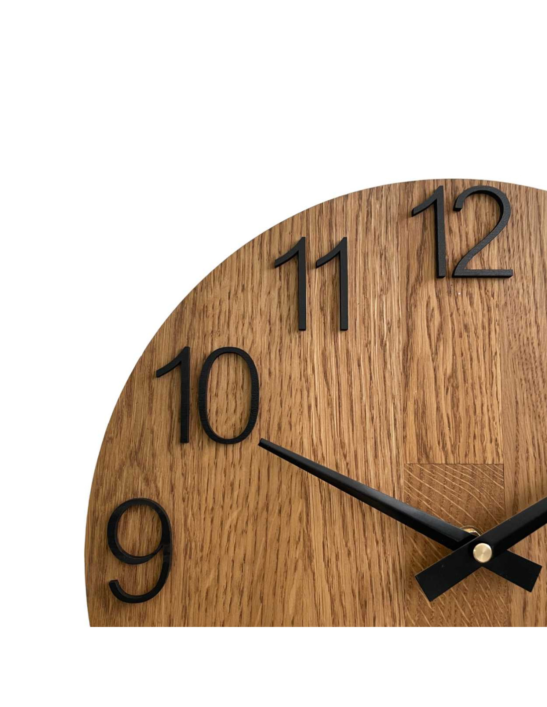 - Prírodný a elegantný dizajn - Kombinácia dubového dreva a kovových ručičiek vytvára moderný, no zároveň nadčasový vzhľad.