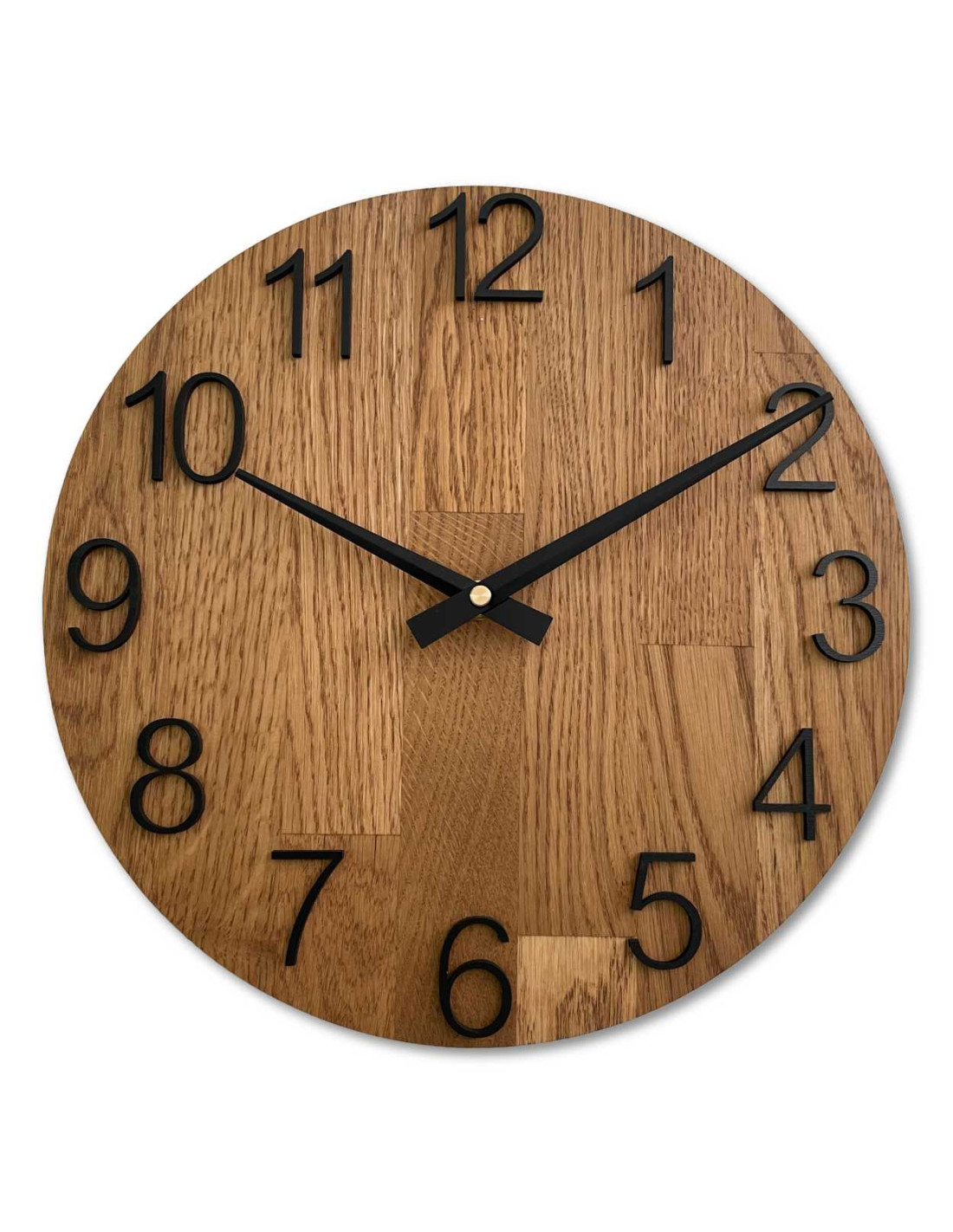 Každé hodiny vznikajú z masívnych dubových panelov, ktoré najprv presne vyrežeme do požadovaného tvaru a veľkosti pomocou CNC technológie.