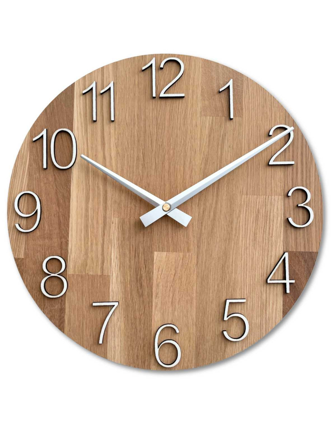 Elegantné nástenné hodiny z masívneho dubu – strieborné ručičky | SHTOP