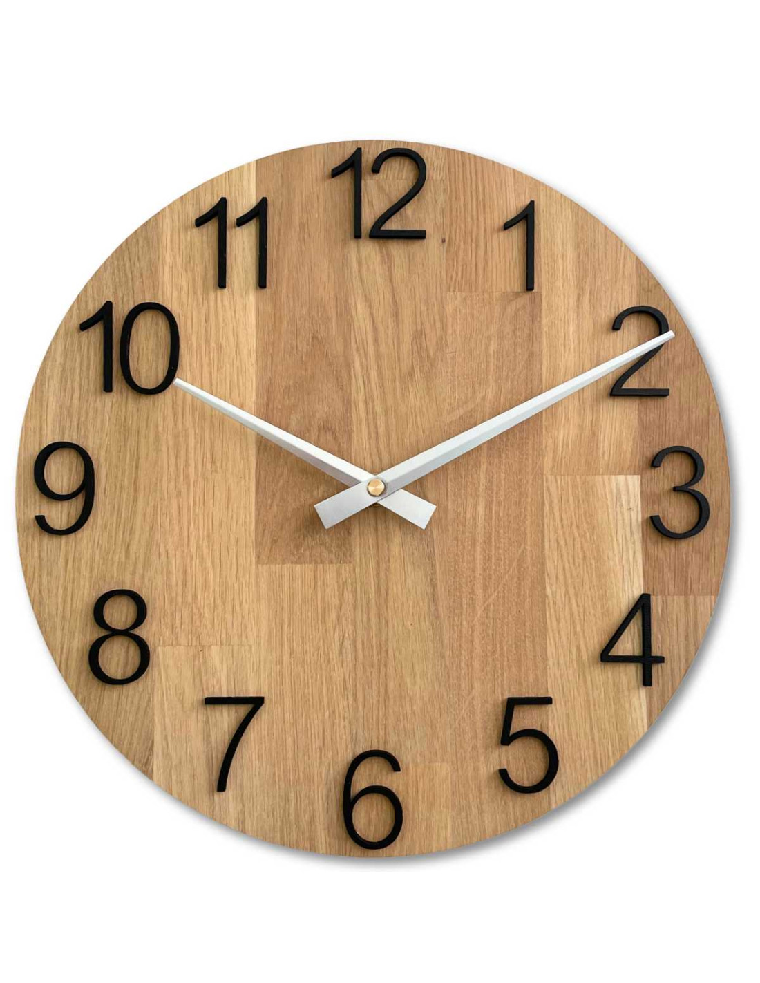 Elegantné nástenné hodiny z masívneho dubu – strieborné ručičky | SHTOP
