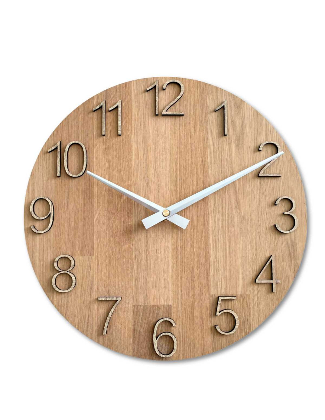Elegantné nástenné hodiny z masívneho dubu – strieborné ručičky | SHTOP