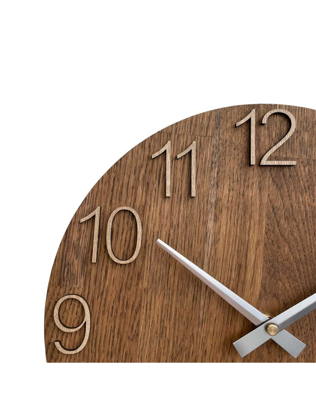 Každé hodiny vznikajú z masívnych dubových panelov, ktoré najprv presne vyrežeme do požadovaného tvaru a veľkosti pomocou CNC technológie.