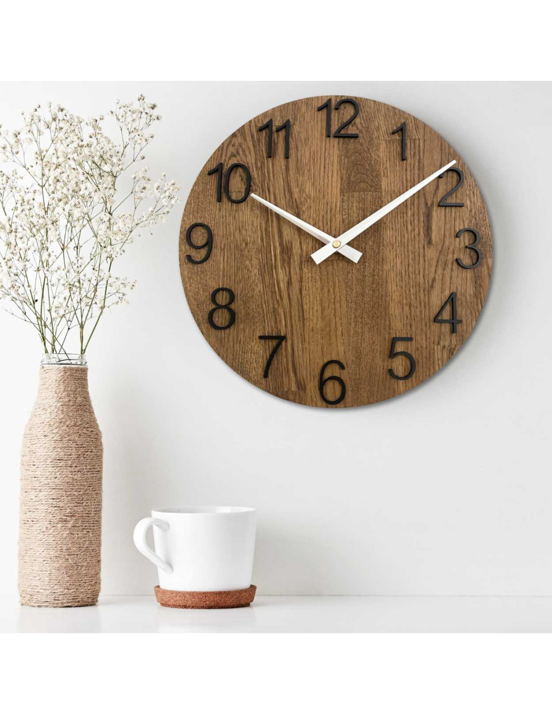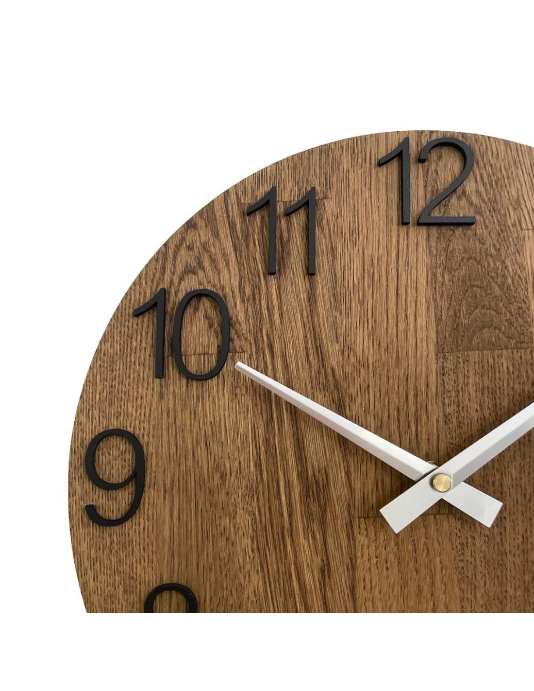 - Prírodný a elegantný dizajn - Kombinácia dubového dreva a kovových ručičiek vytvára moderný, no zároveň nadčasový vzhľad.