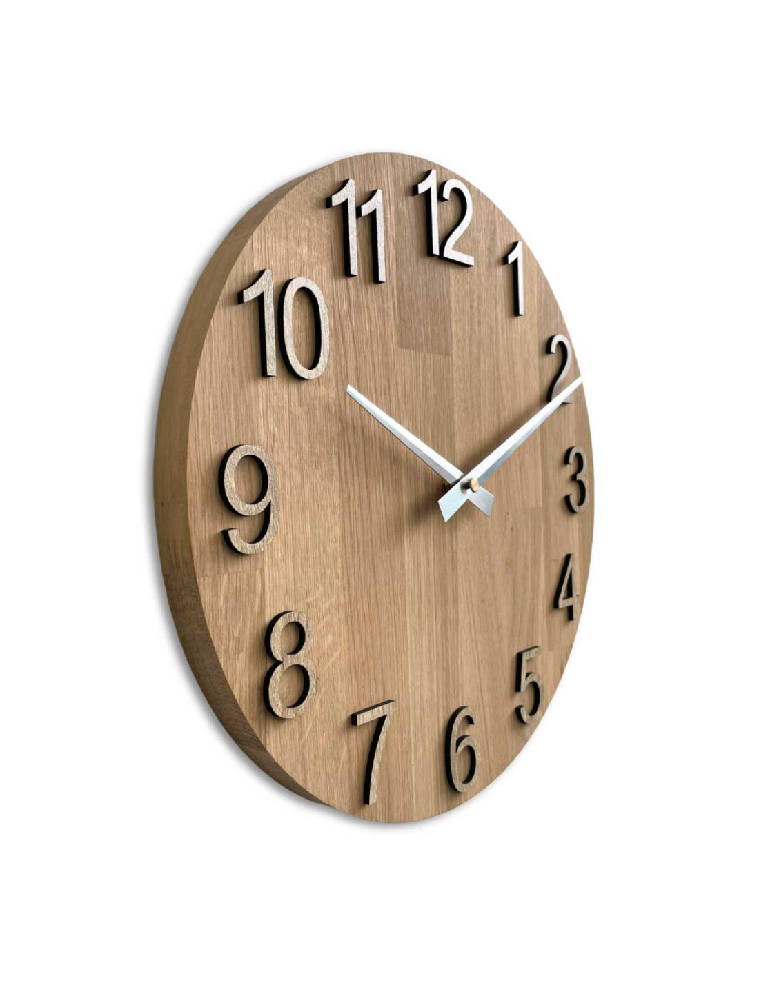 - Elegantný dizajn: Kombinácia dubového dreva a kovových ručičiek vytvára moderný, no zároveň nadčasový vzhľad.