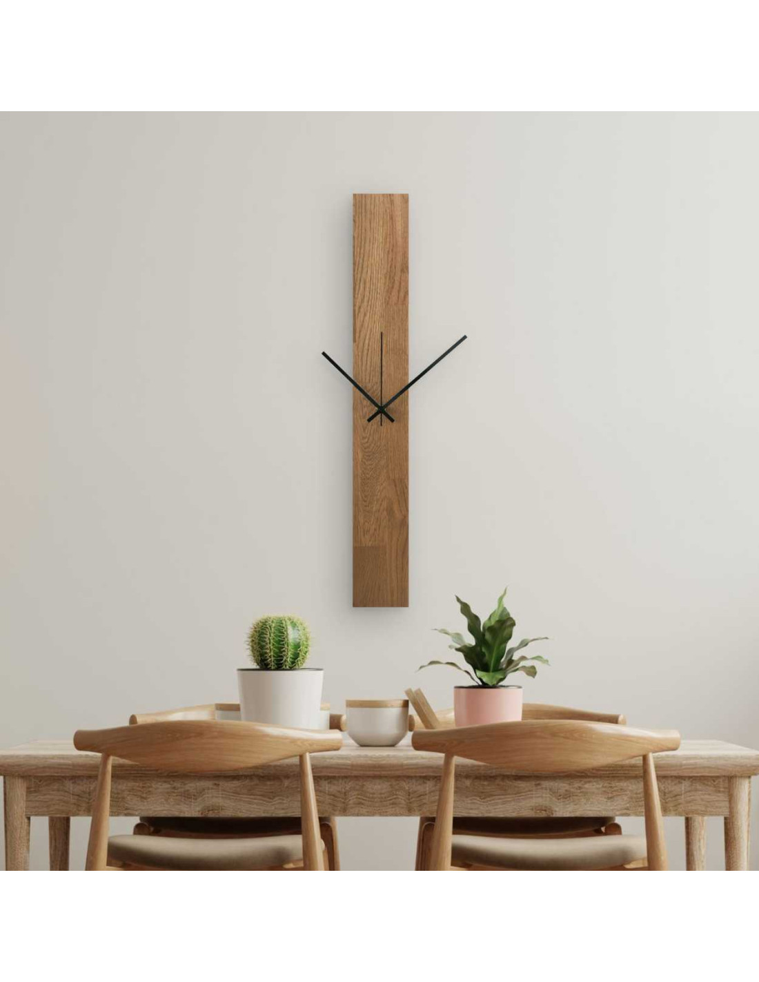 - Elegantný dizajn: Kombinácia dubového dreva a kovových ručičiek vytvára moderný, no zároveň nadčasový vzhľad.