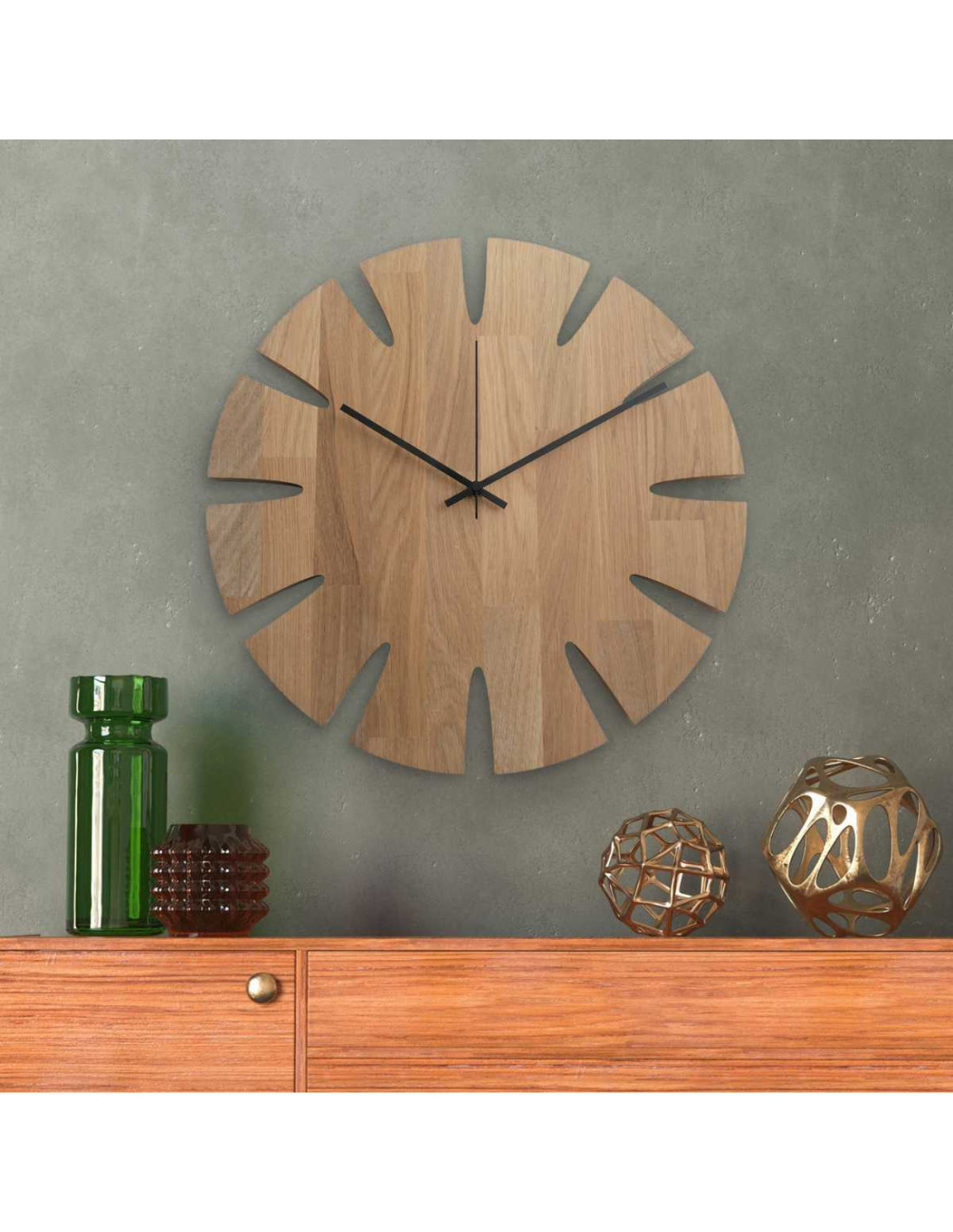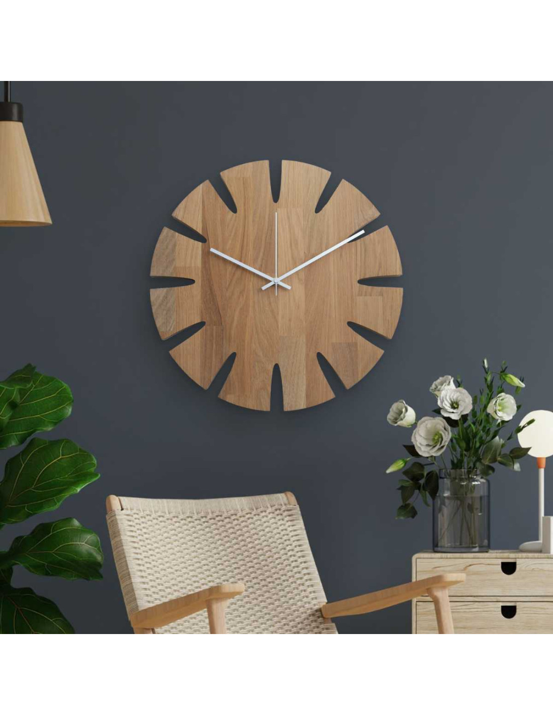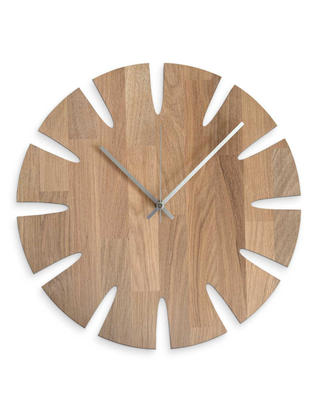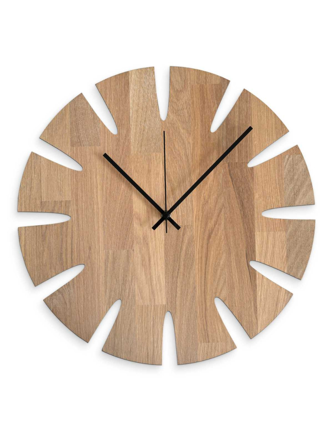 Luxusné hodiny na stenu z dubového dreva spájajú moderný dizajn s prírodným charakterom.
