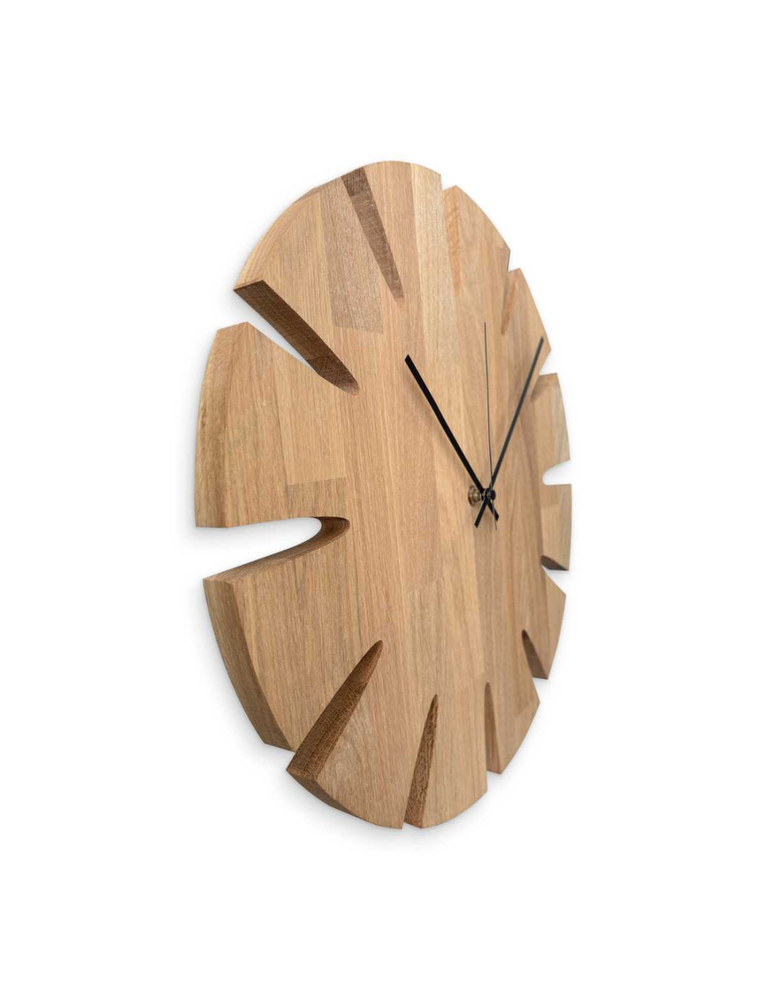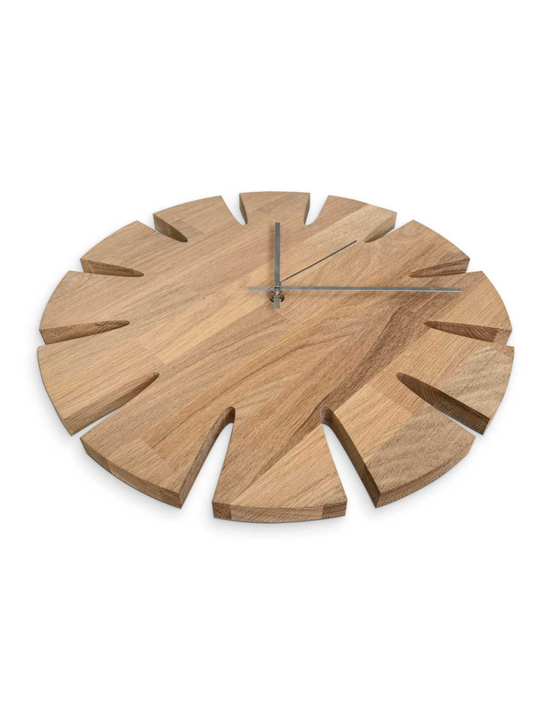 Každé hodiny vznikajú z masívnych dubových panelov, ktoré najprv presne vyrežeme do požadovaného tvaru a veľkosti pomocou CNC technológie.