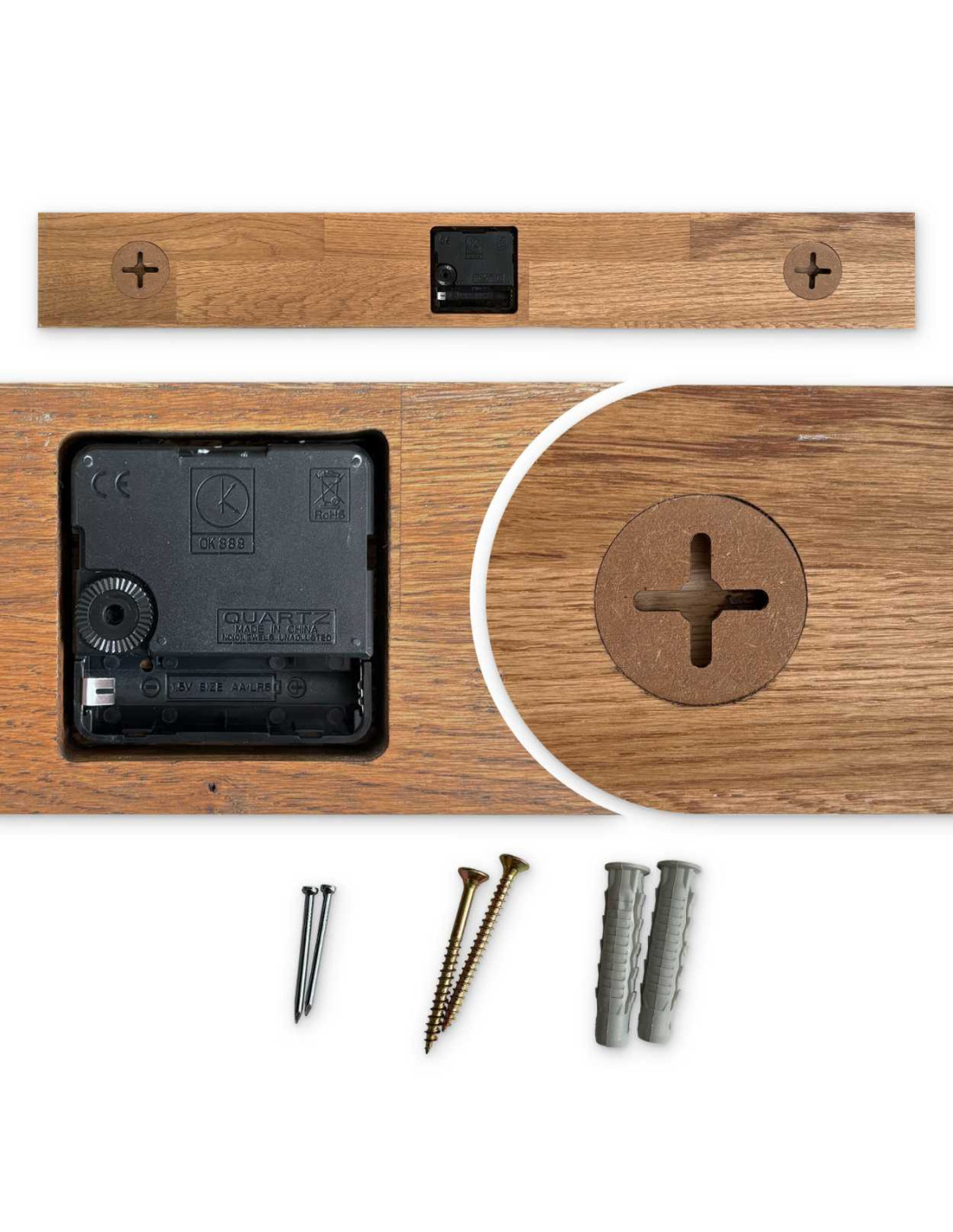 - Prírodný a elegantný dizajn - Kombinácia dubového dreva a kovových ručičiek vytvára moderný, no zároveň nadčasový vzhľad.