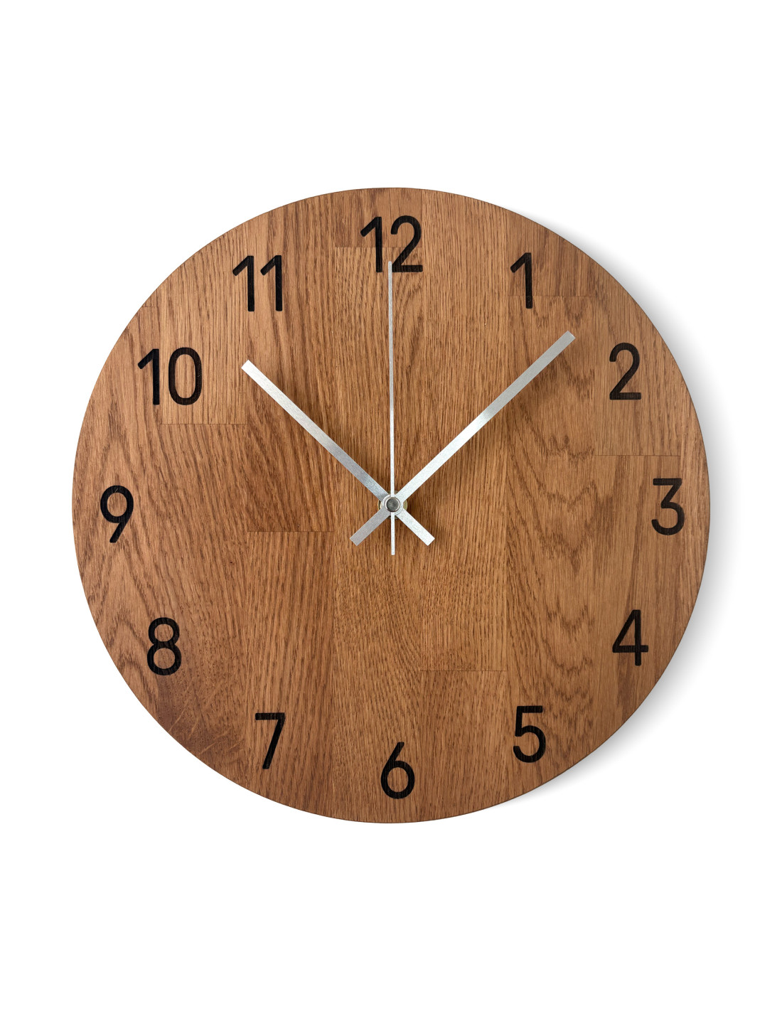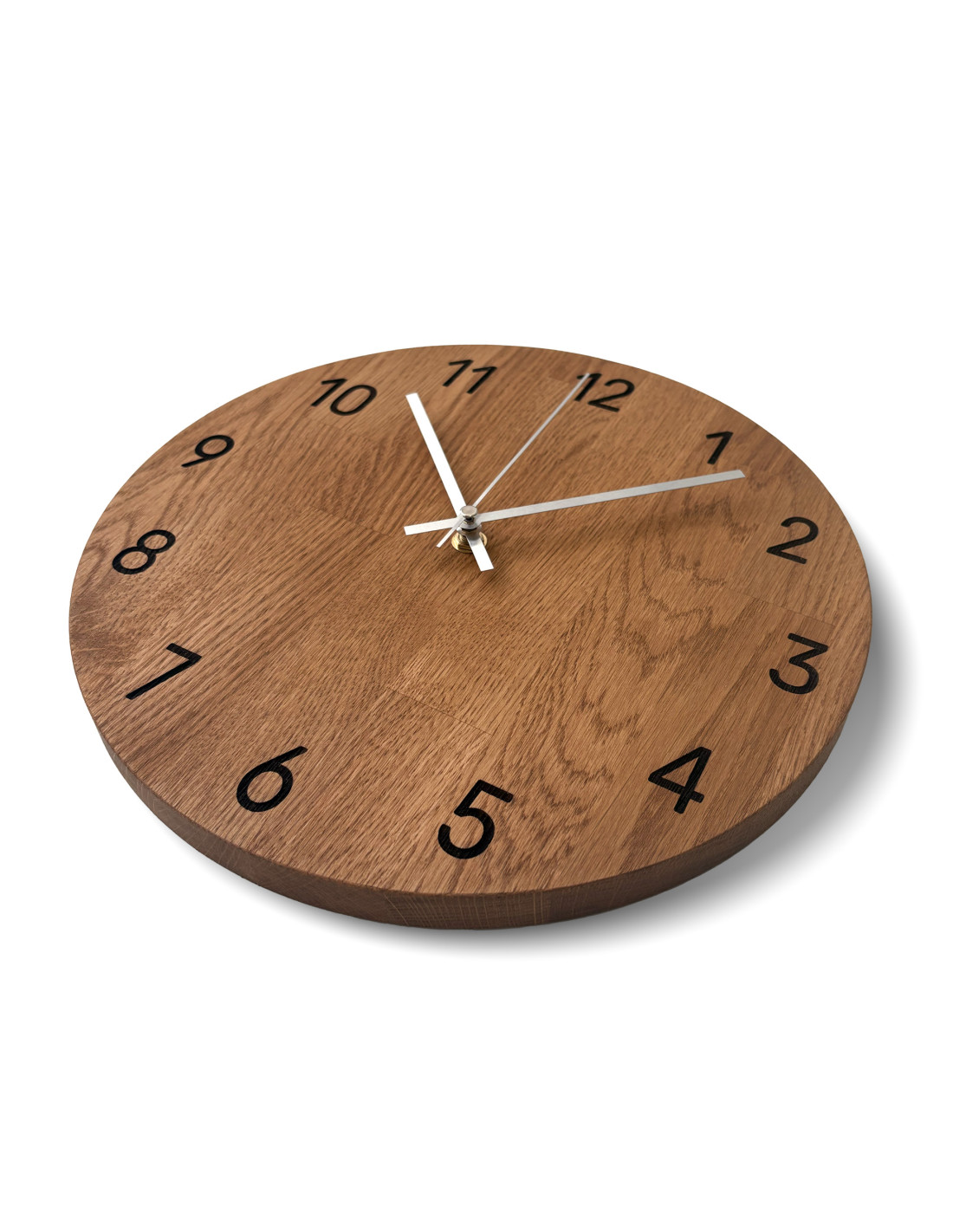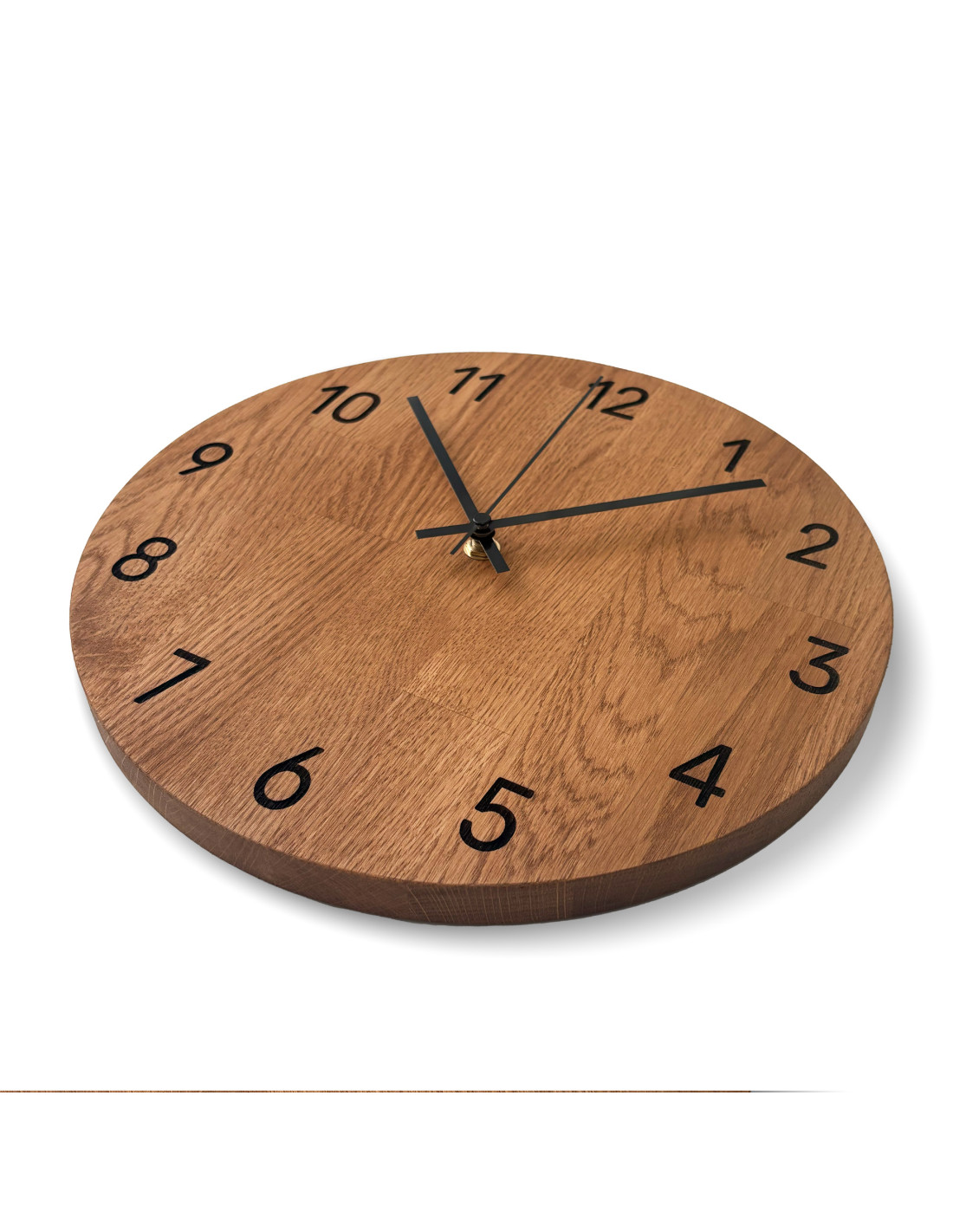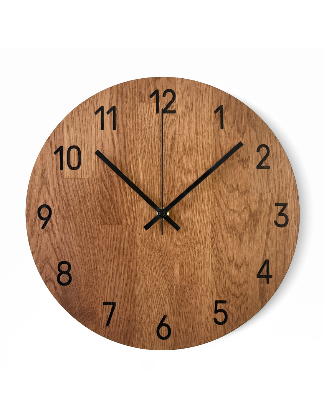 Každé hodiny vznikajú z masívnych dubových panelov, ktoré najprv presne vyrežeme do požadovaného tvaru a veľkosti pomocou CNC technológie.