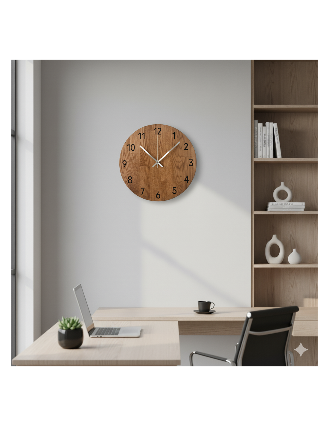 - Elegantný dizajn: Kombinácia dubového dreva a kovových ručičiek vytvára moderný, no zároveň nadčasový vzhľad.