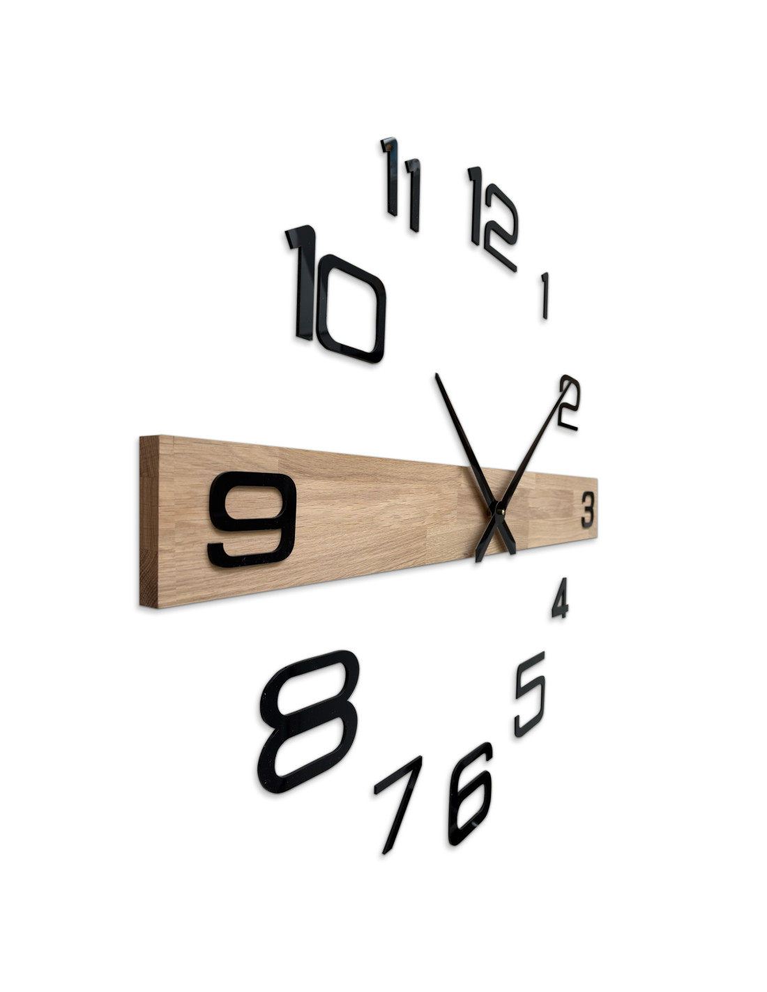 Každé hodiny vznikajú z masívnych dubových panelov, ktoré najprv presne vyrežeme do požadovaného tvaru a veľkosti pomocou CNC technológie.