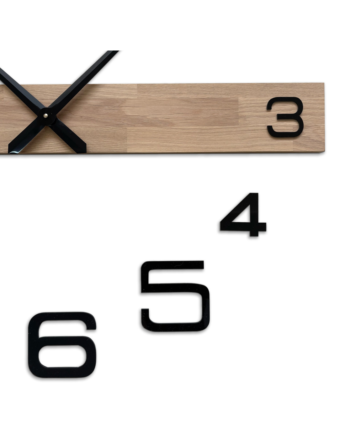 • Plexisklo: veľkosť číslic z plexiskla zostáva rovnaká pri oboch veľkostiach hodín (rozmer čísla "8" je 108 x 96 mm), na celom povrchu číslic sa nachádza ochranná fólia, na zadnej časti sa