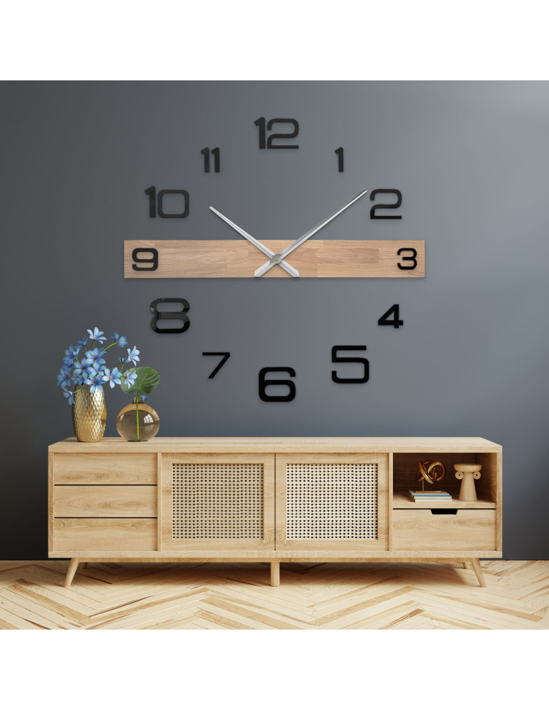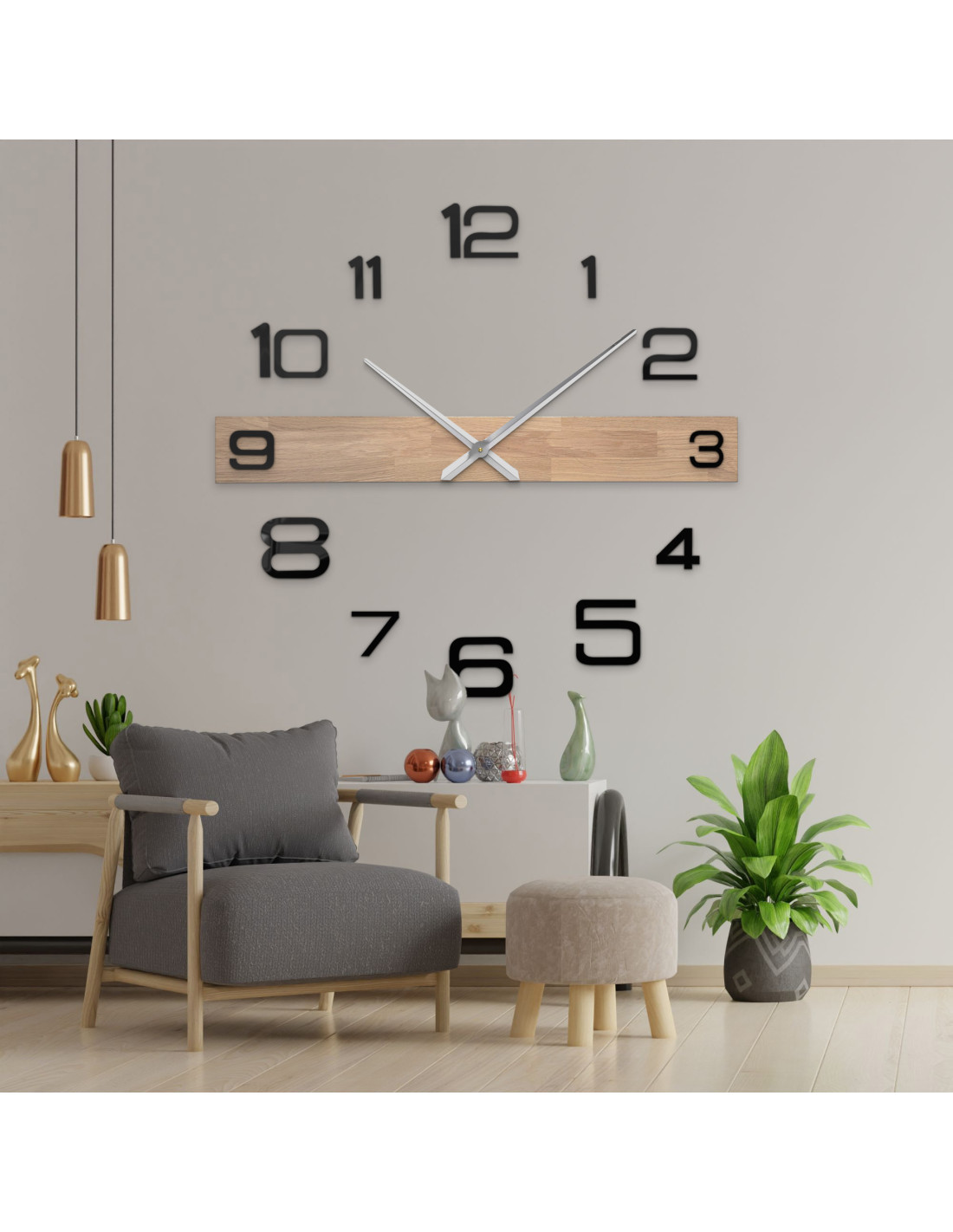 • Ručičky hodín: kovové strieborné/čierne – minútová ručička 31 cm (12,2 palca), hodinová ručička 39 cm (15,4 palca)