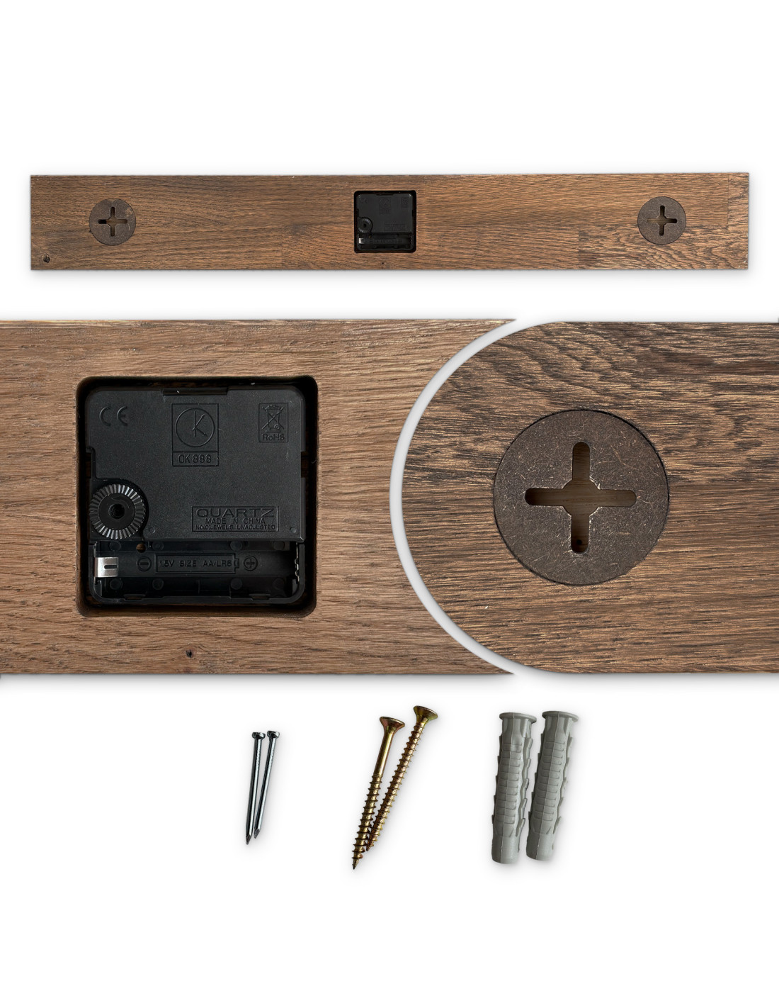 - Prírodný a elegantný dizajn - Kombinácia dubového dreva a kovových ručičiek vytvára moderný, no zároveň nadčasový vzhľad.