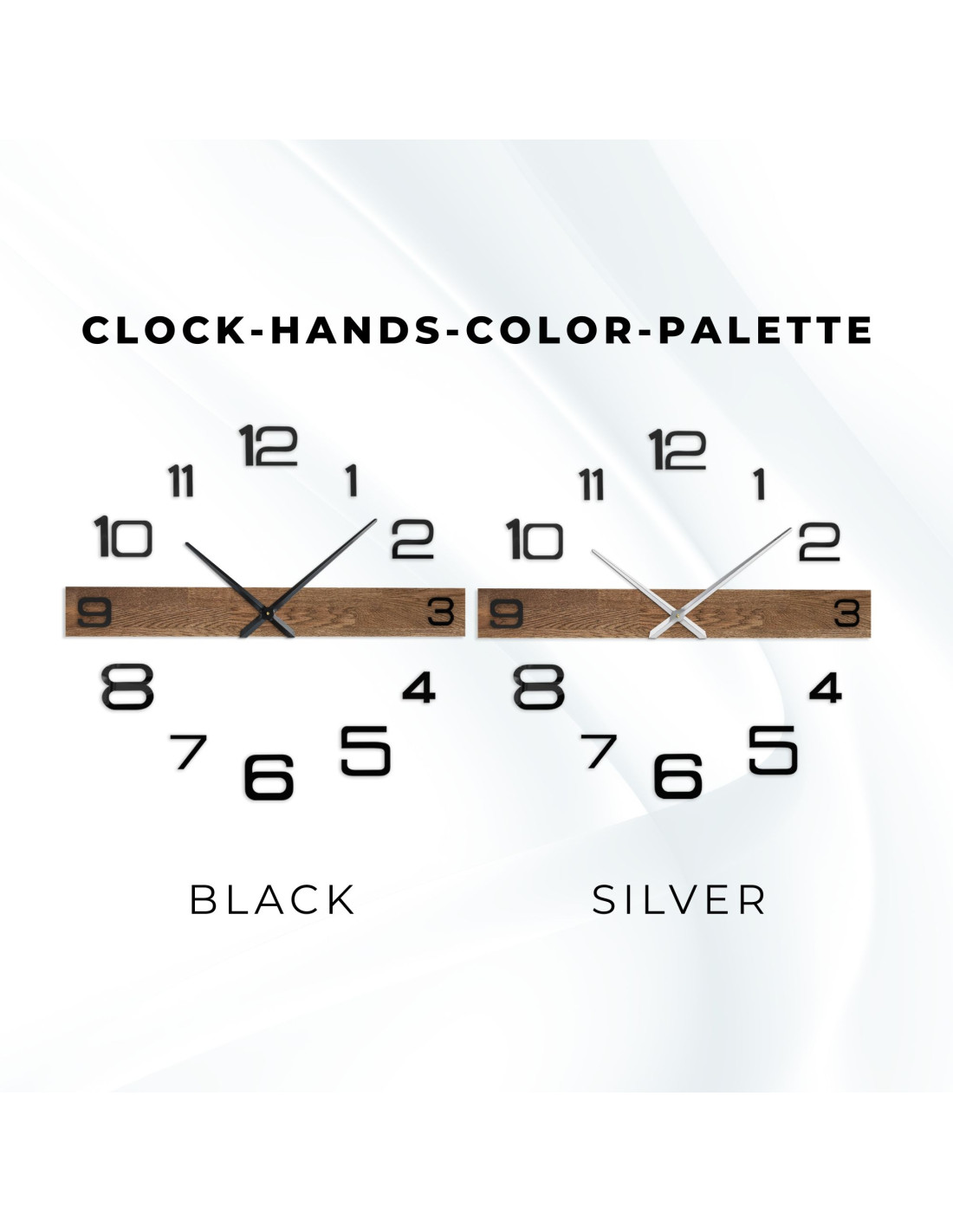 • Ručičky hodín: kovové strieborné/čierne – minútová ručička 31 cm (12,2 palca), hodinová ručička 39 cm (15,4 palca)