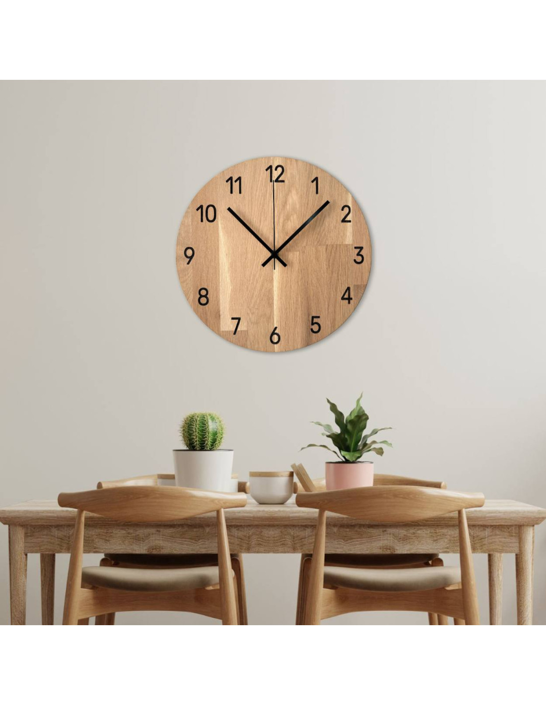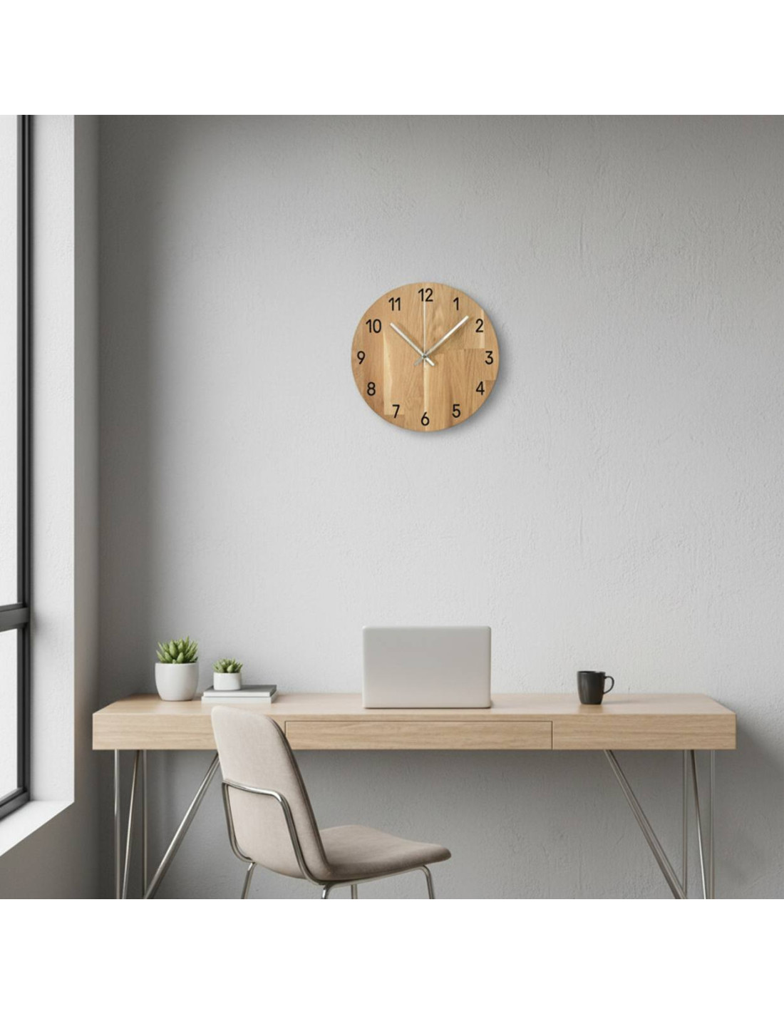 - Elegantný dizajn: Kombinácia dubového dreva a kovových ručičiek vytvára moderný, no zároveň nadčasový vzhľad.